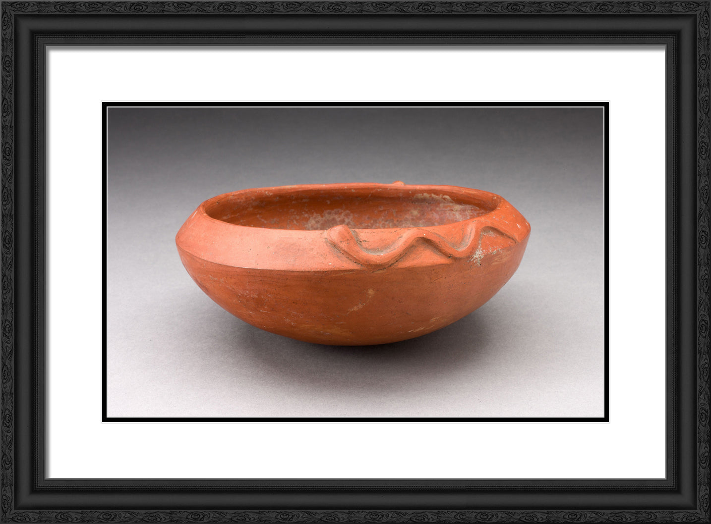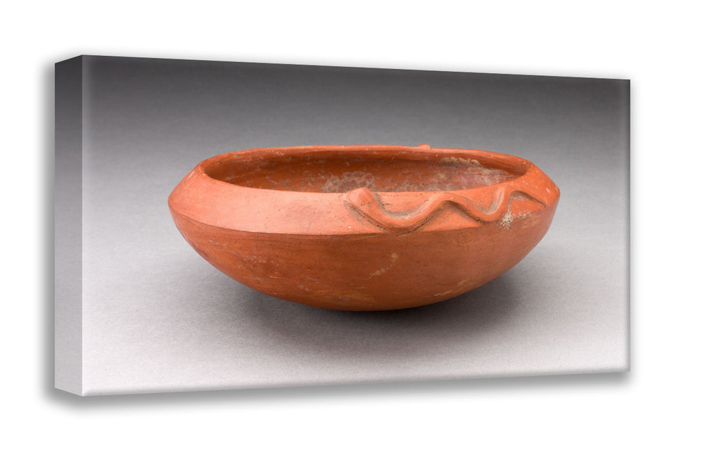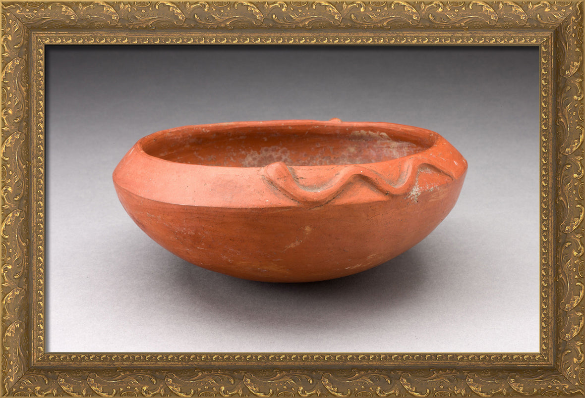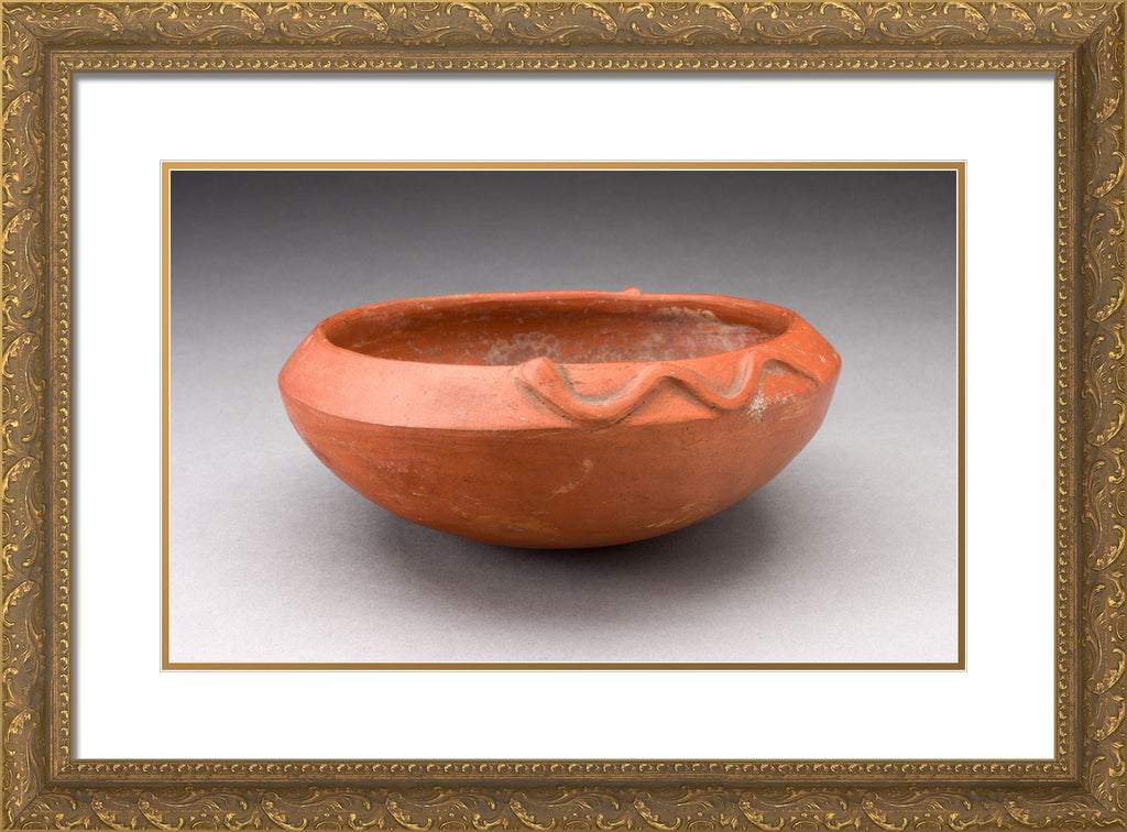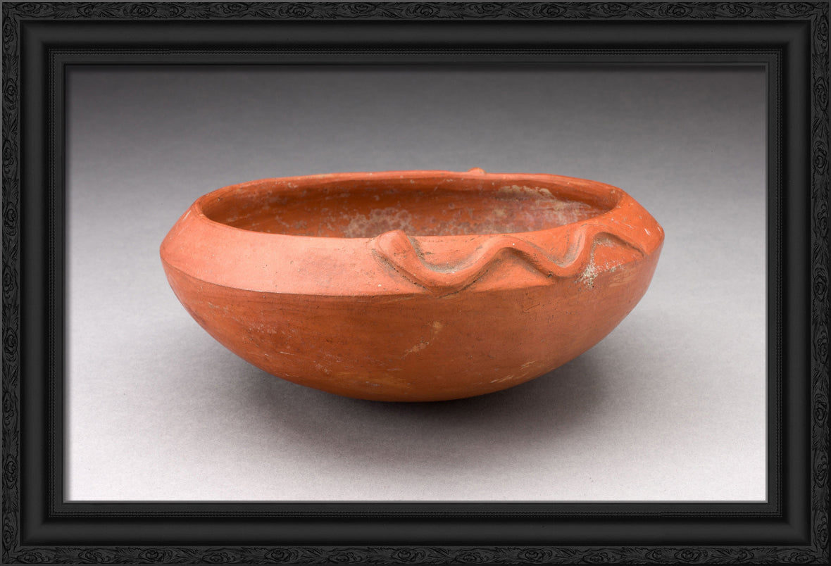 • Redware Bowl with Molded Snake-like Form on Rim by Inca