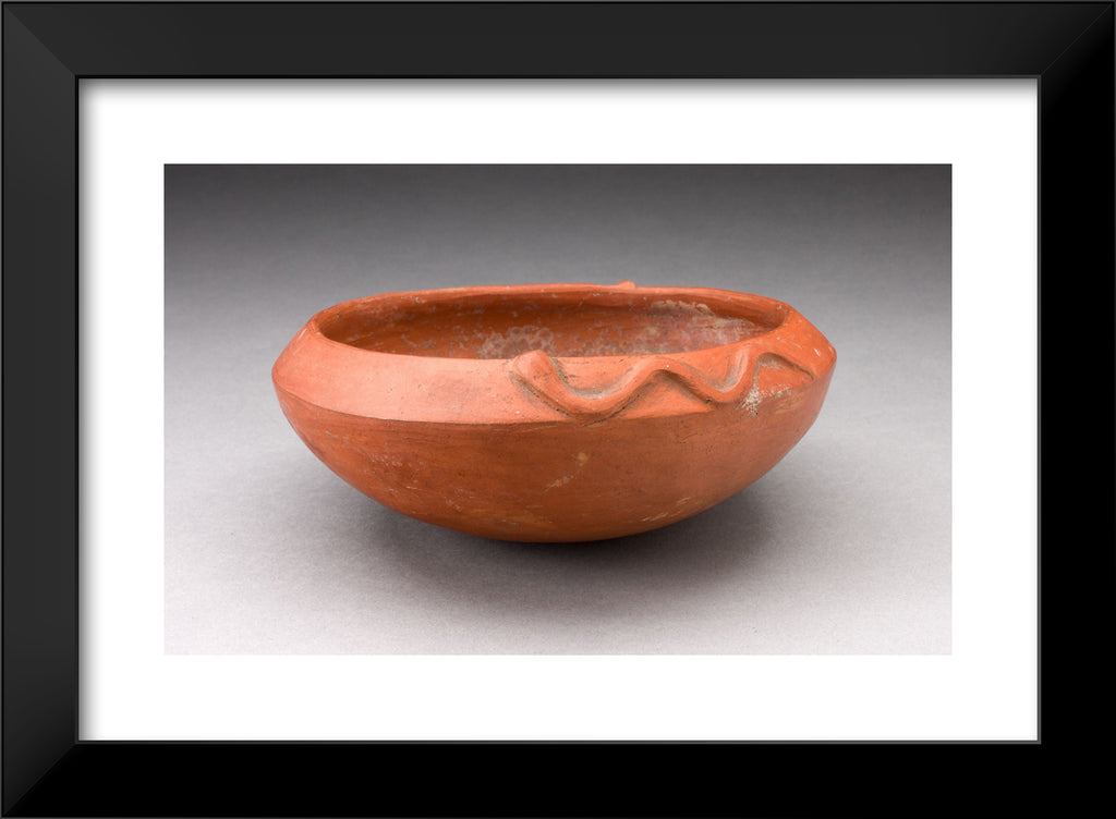 Redware Bowl with Molded Snake-like Form on Rim by Inca