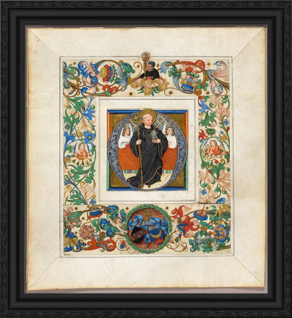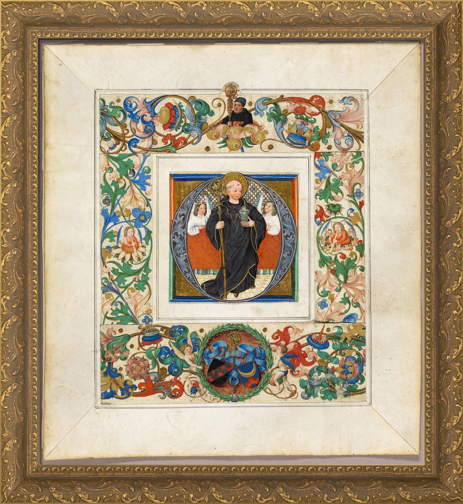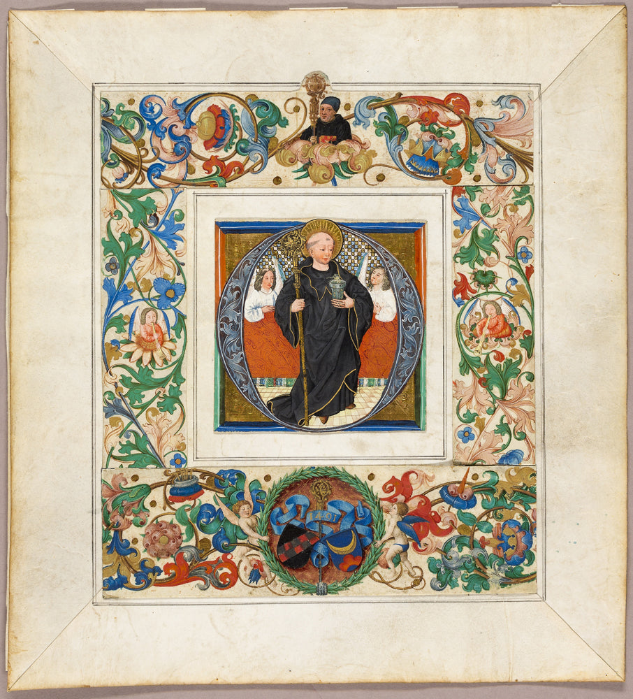 / Saint Benedict, initial ‘O', with border fragments from a Missal by Jakob Elsner
