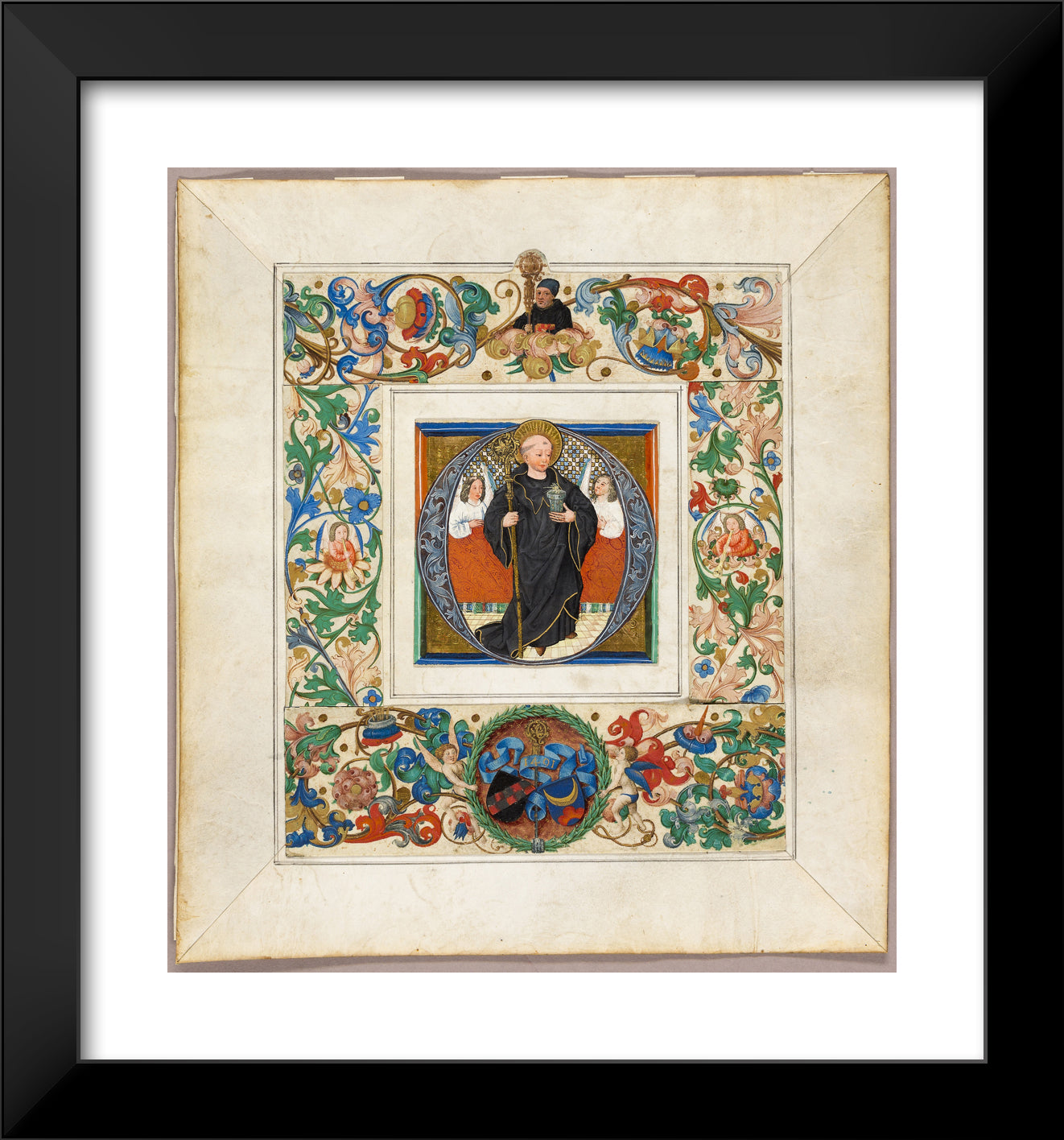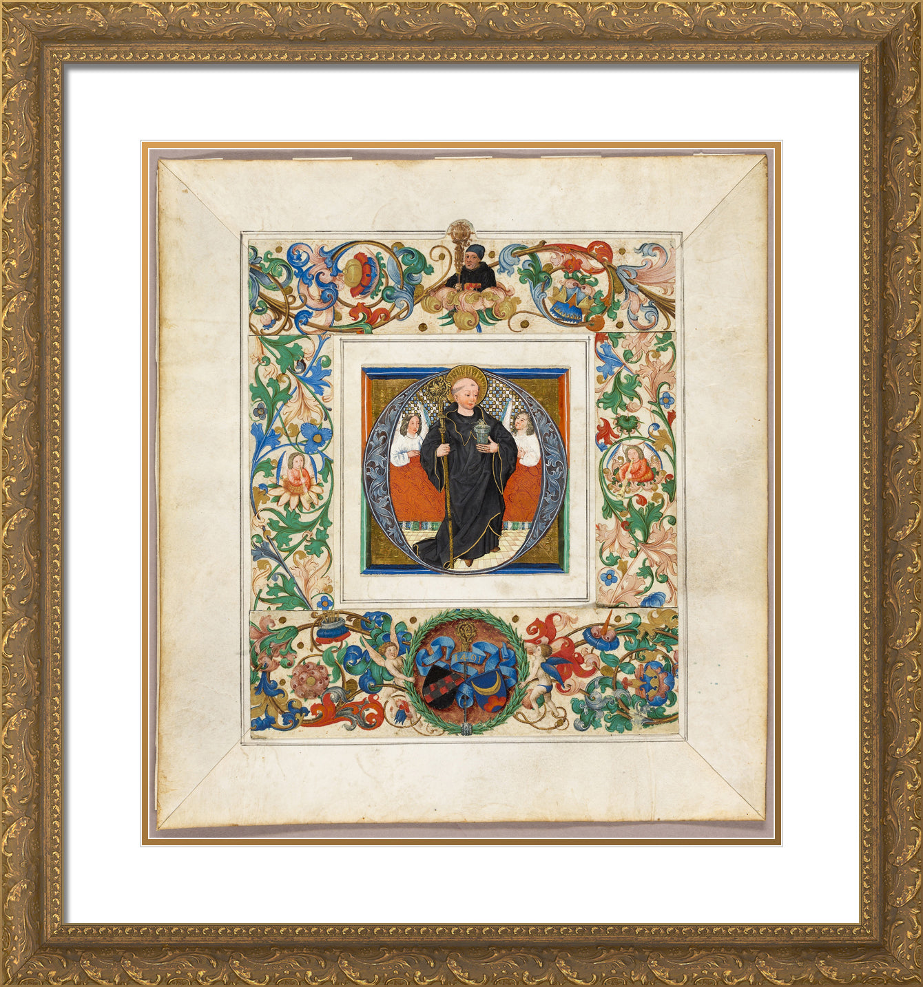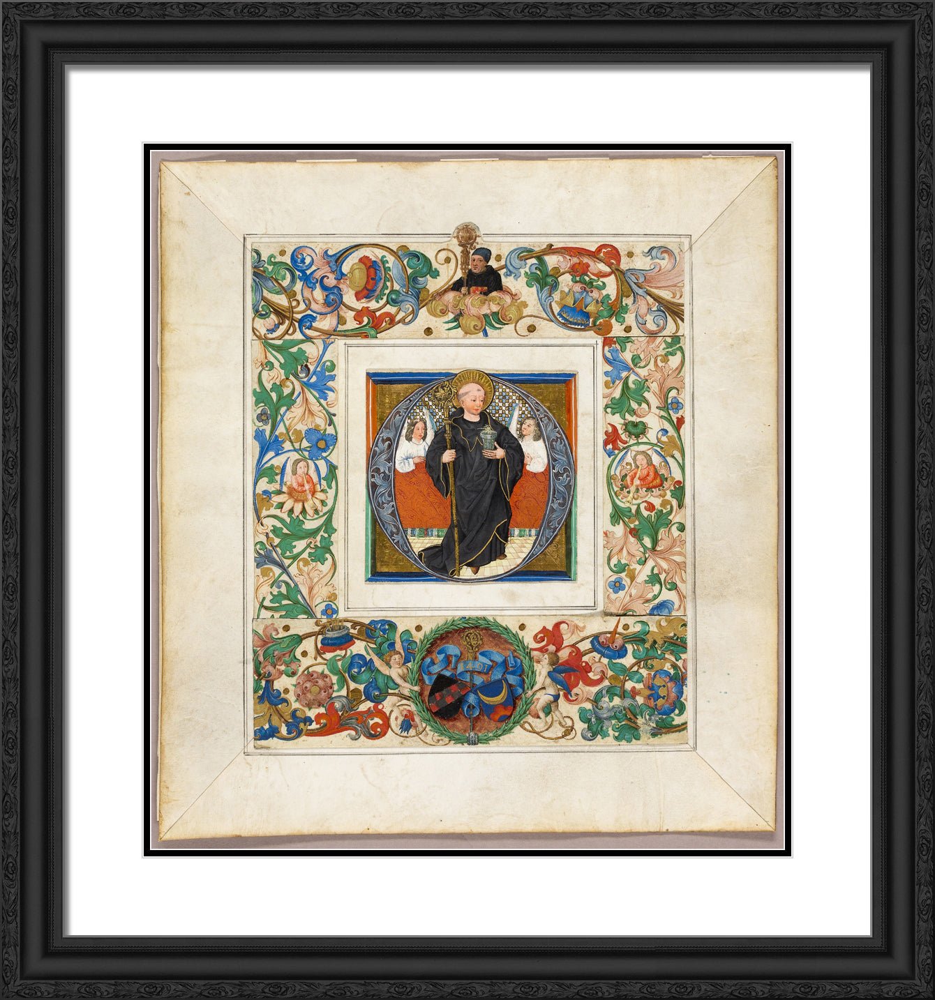 / Saint Benedict, initial ‘O', with border fragments from a Missal by Jakob Elsner