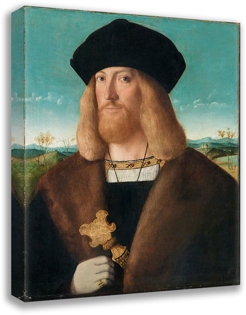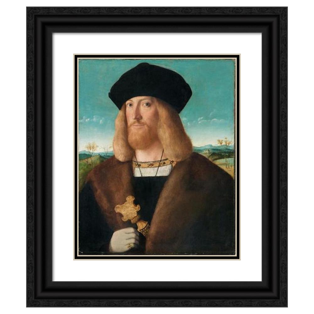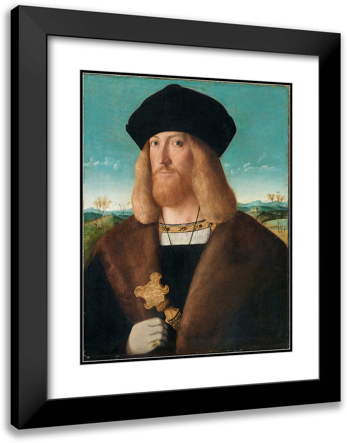 / Portrait of a Bearded Man, Half-Length, Wearing a Fur-Lined Coat and Holding a Dagger, a Landscape Beyond