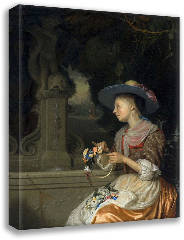 Woman Weaving a Crown of Flowers (C. 1675-1680)