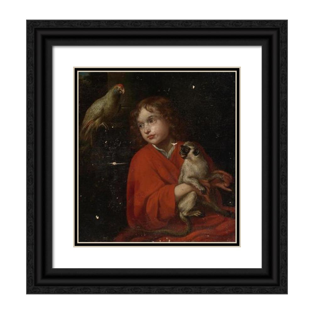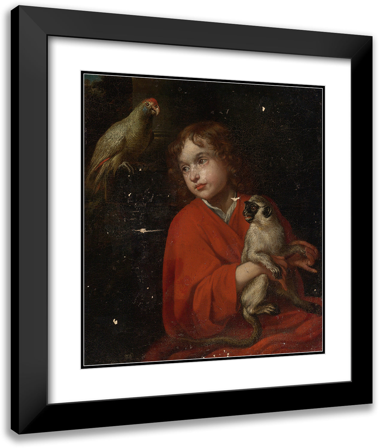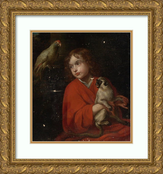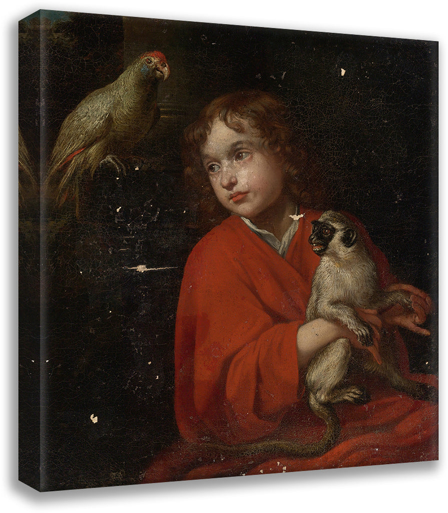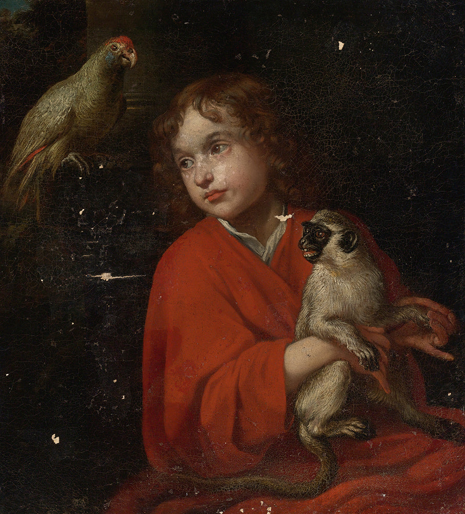 Parrot Watching a Boy Holding a Monkey