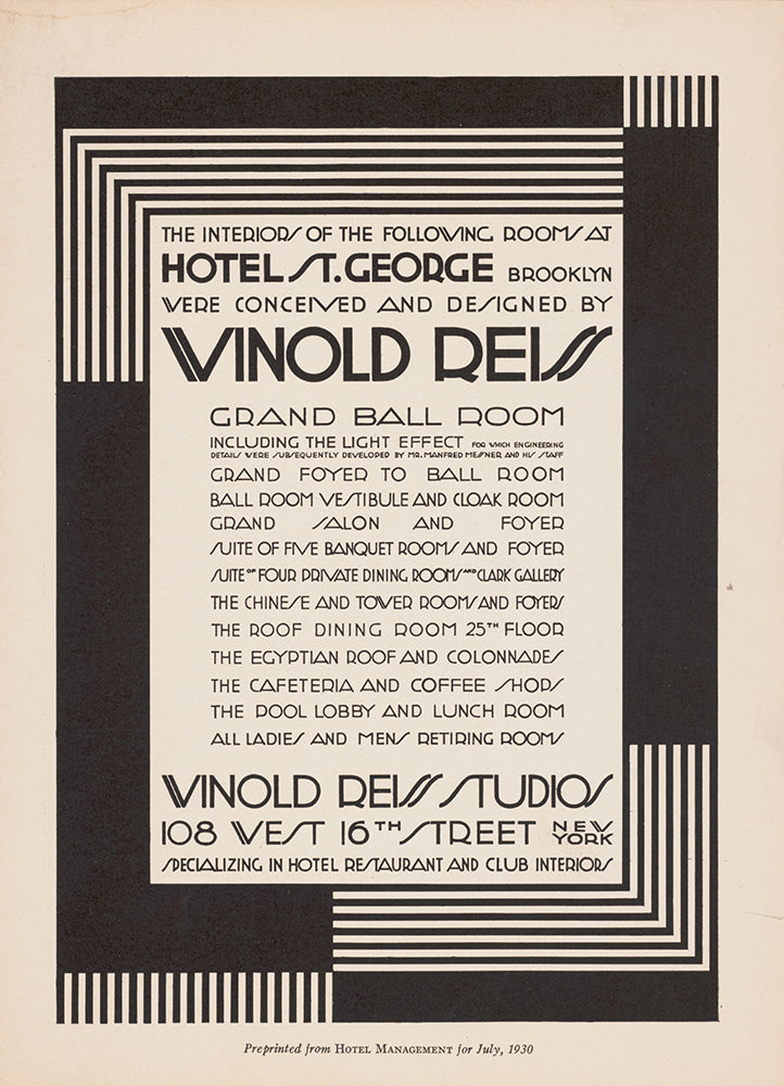 / Graphic Design for St. George Hotel Advertisement in Hotel Management Magazine. (1930)