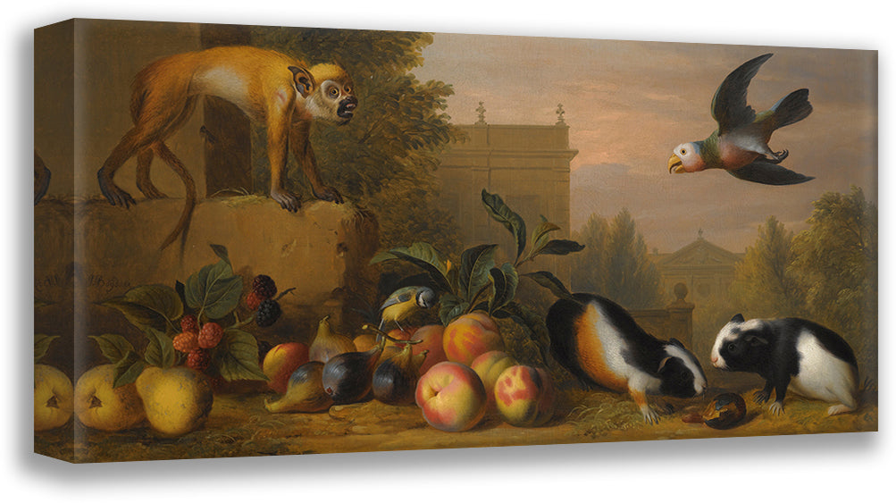 / An Extensive Landscape with a Capuchin Squirrel Monkey, Two Guinea Pigs, a Blue Tit and an Amazon St. Vincent Parrot