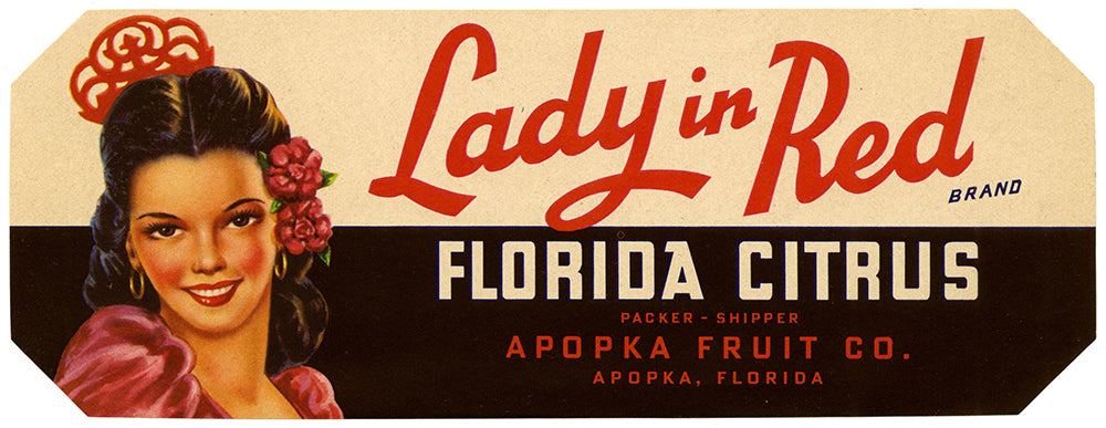 Lady in Red Brand Florida Citrus Label (1930-1950)