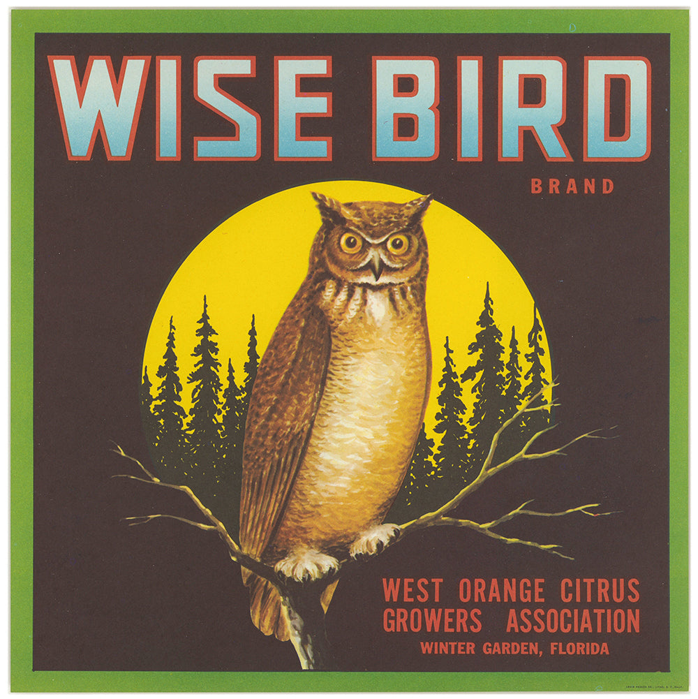 Wise Bird Brand Citrus Label (1930s)