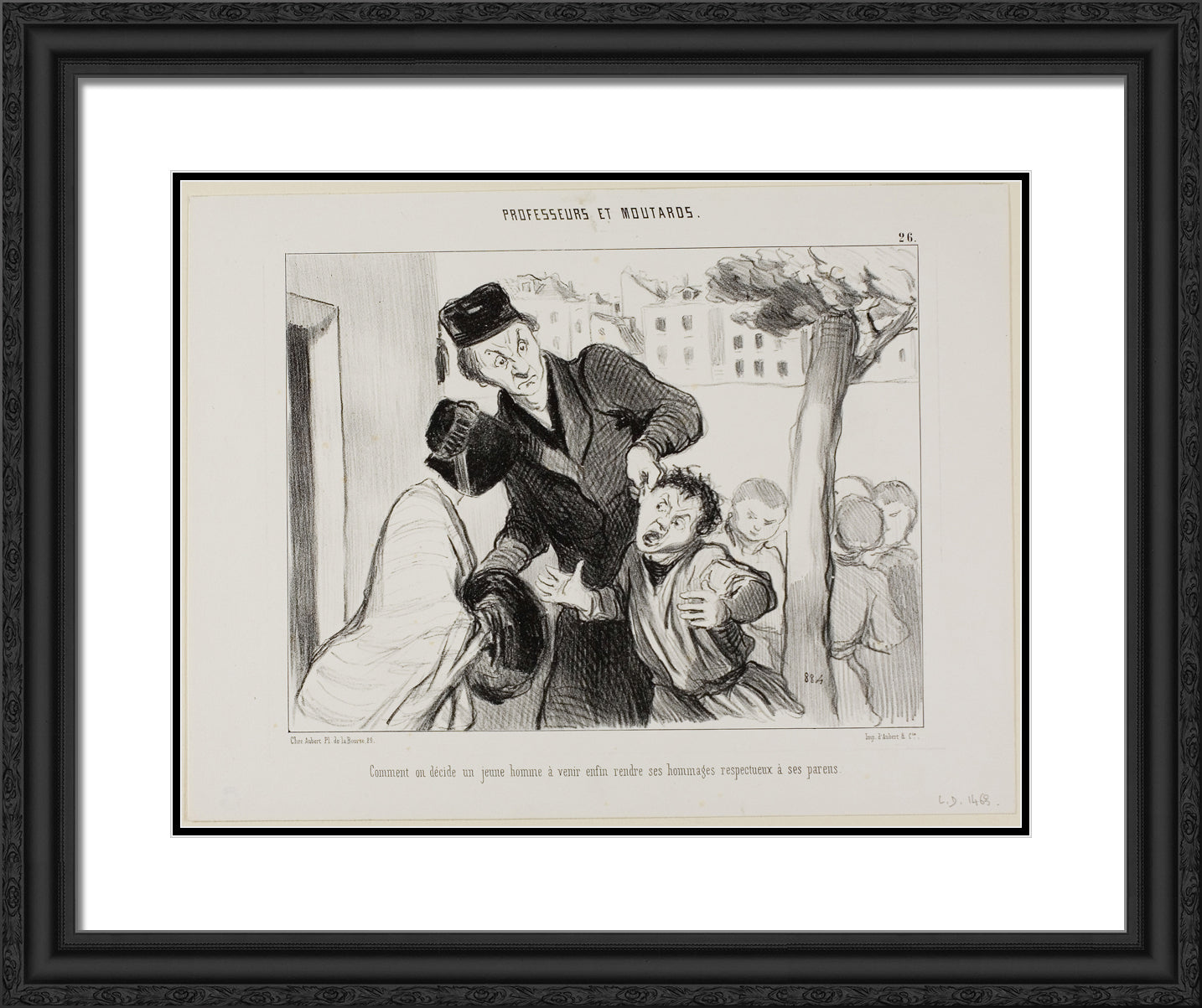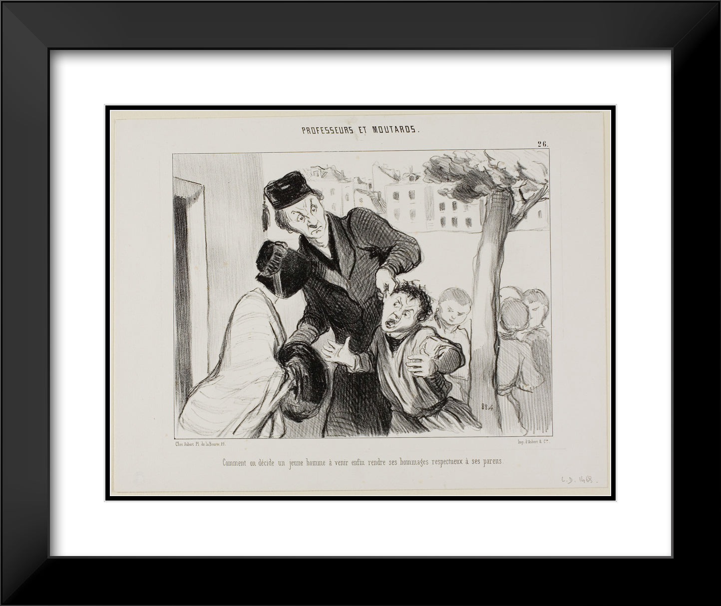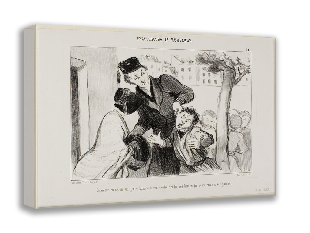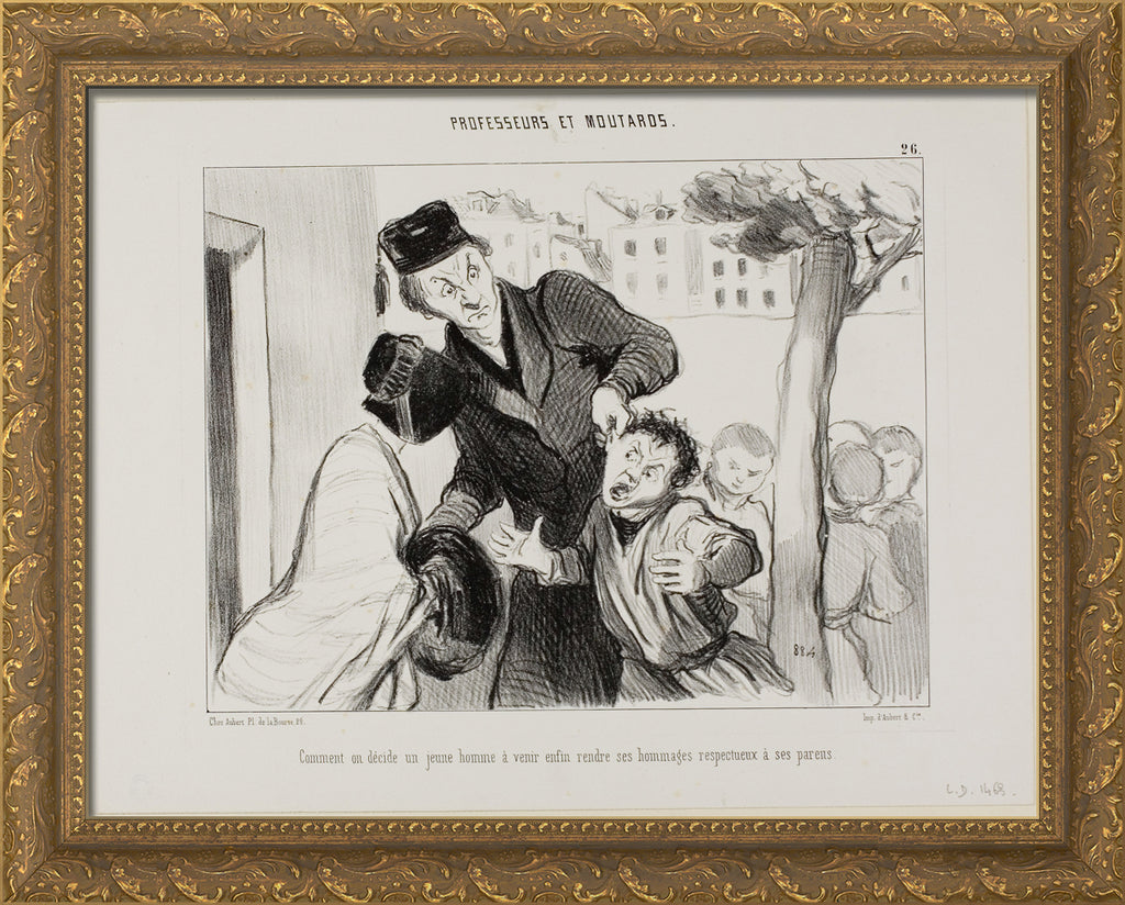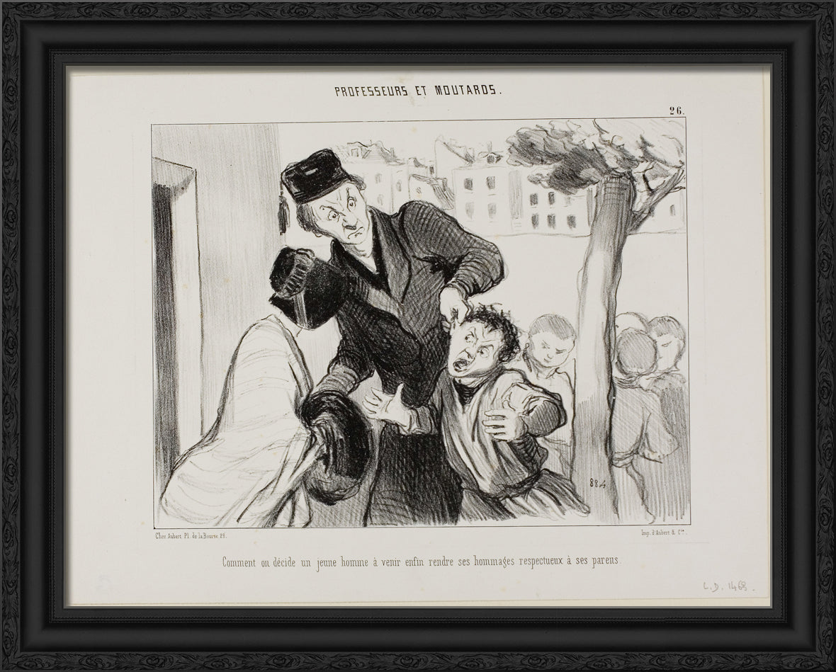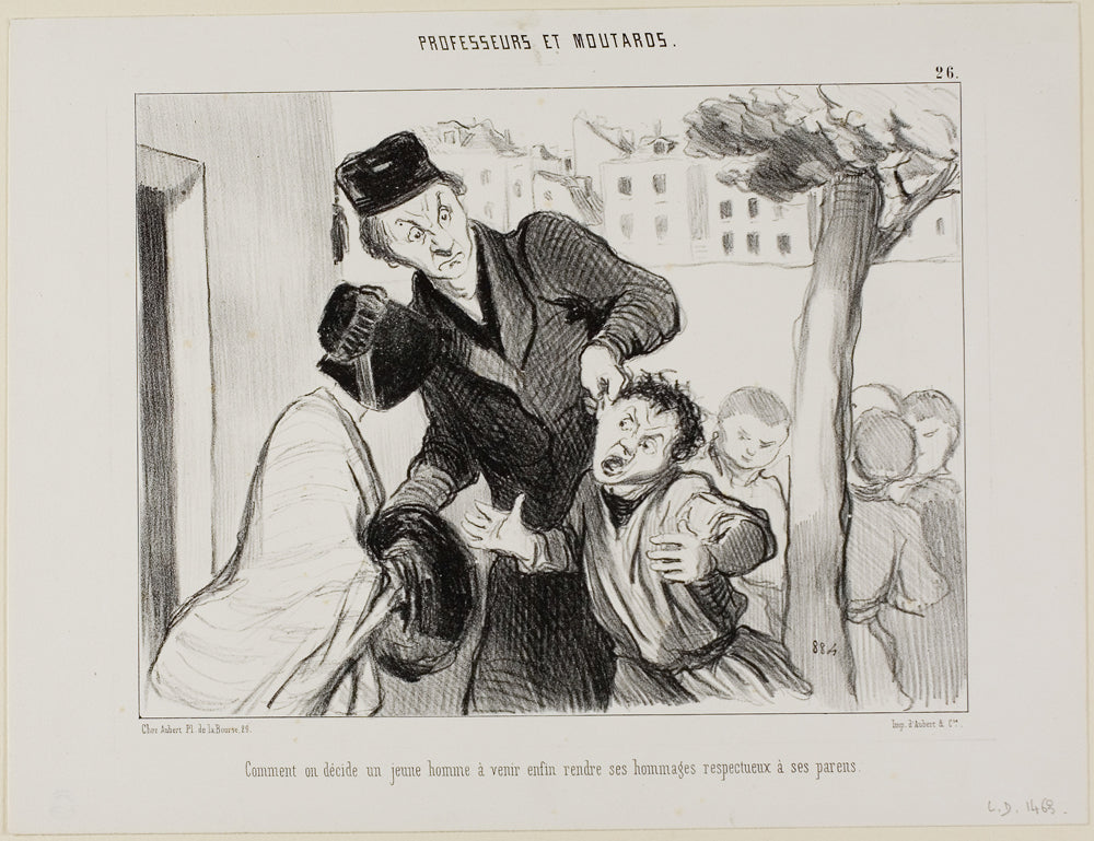 How to Convince a Young Man to Finally Learn to Pay his Respects to His Parents, plate 26 from Professeurs Et Moutards by Honore-Victorin Daumier