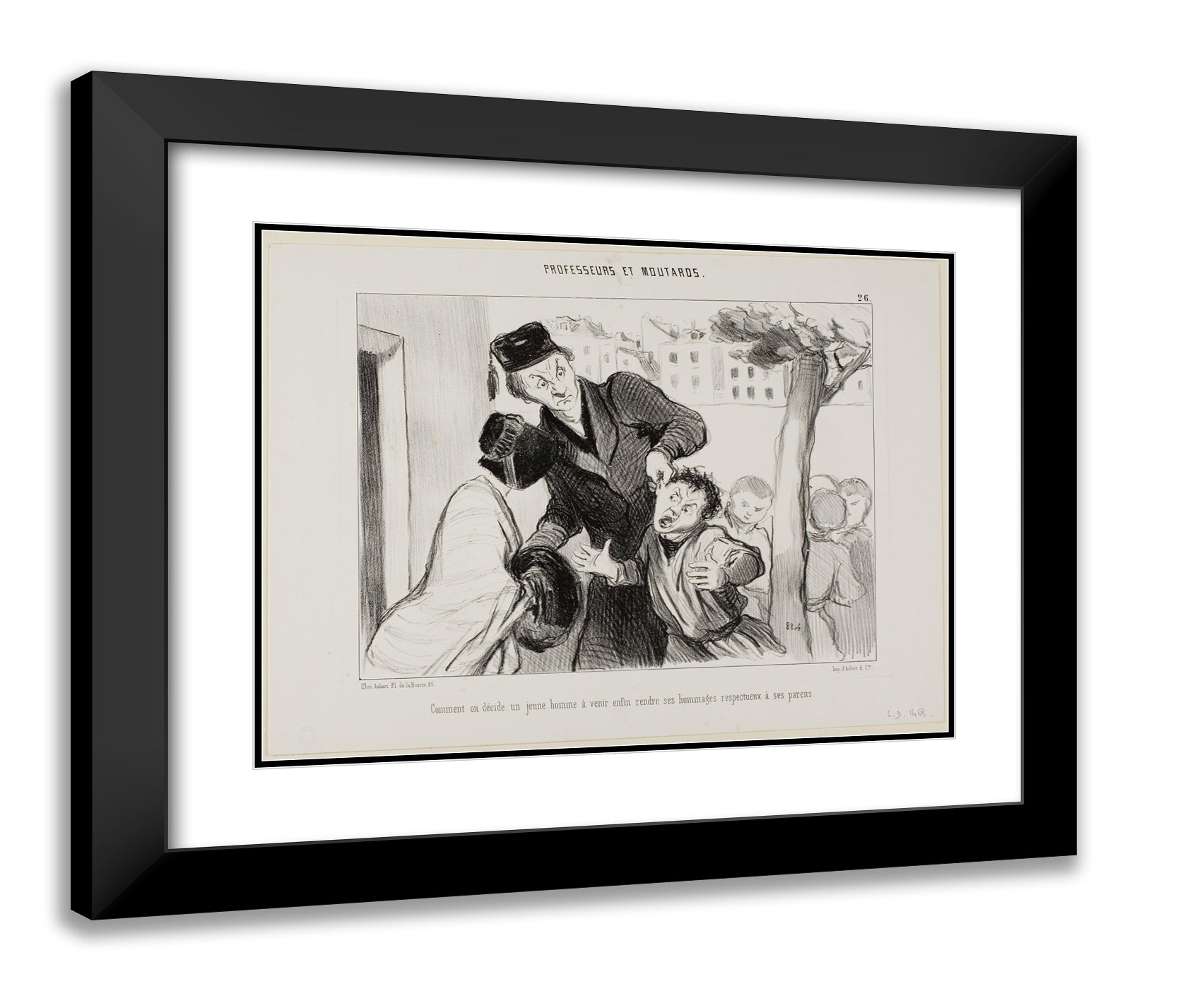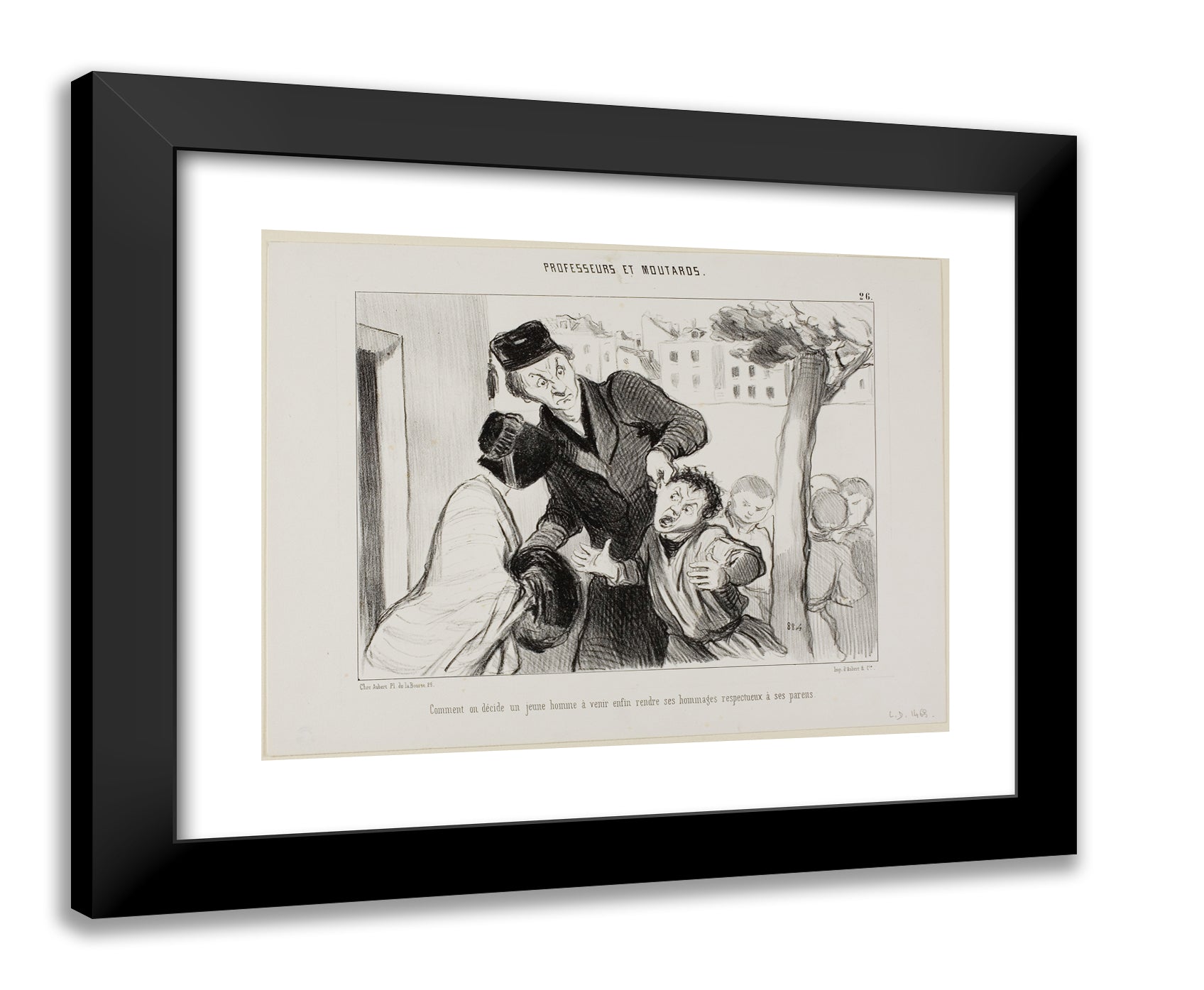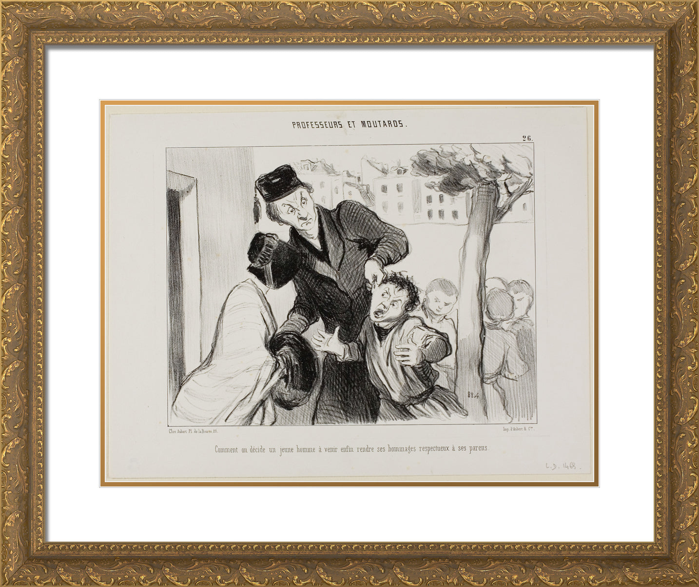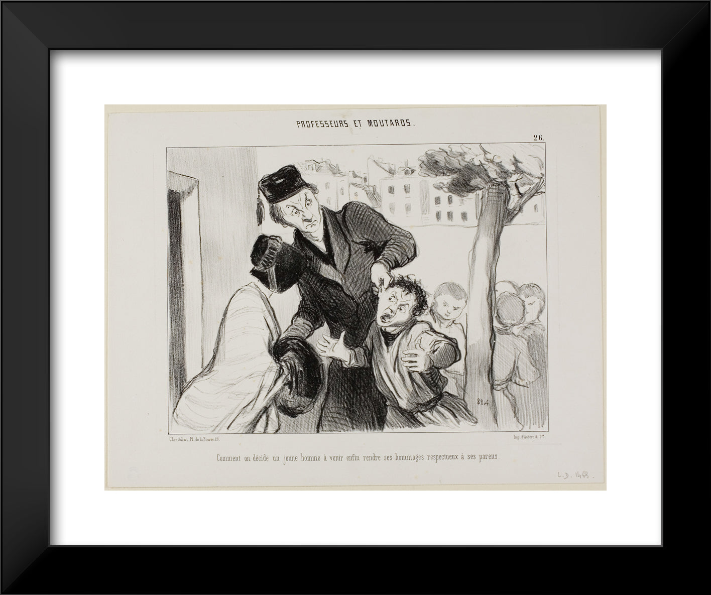 How to Convince a Young Man to Finally Learn to Pay his Respects to His Parents, plate 26 from Professeurs Et Moutards by Honore-Victorin Daumier