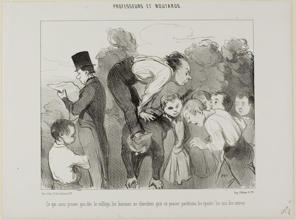 MuseumPrints Which proves again that already since high school man supports himself on the shoulders of his kin in order to advance in life, plate 30 from Professeurs Et Moutards by Honore-Victorin Daumier from $49.99 $64.99