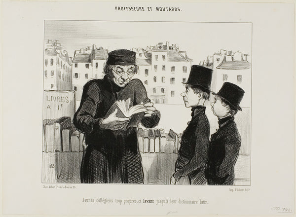 MuseumPrints Clean young high school students. They even try to selling off their Latin dictionary, plate 24 from Professeurs Et Moutards by Honore-Victorin Daumier from $49.99 $64.99