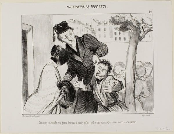 MuseumPrints How to Convince a Young Man to Finally Learn to Pay his Respects to His Parents, plate 26 from Professeurs Et Moutards by Honore-Victorin Daumier from $49.99 $64.99