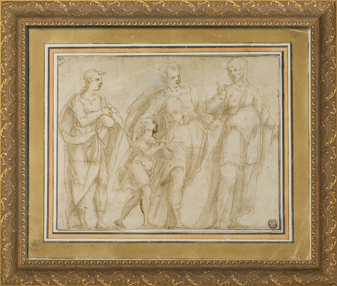 / Departure of Tobit (?) (recto); Sketch of Crucifixion (verso) by Unknown Genoese