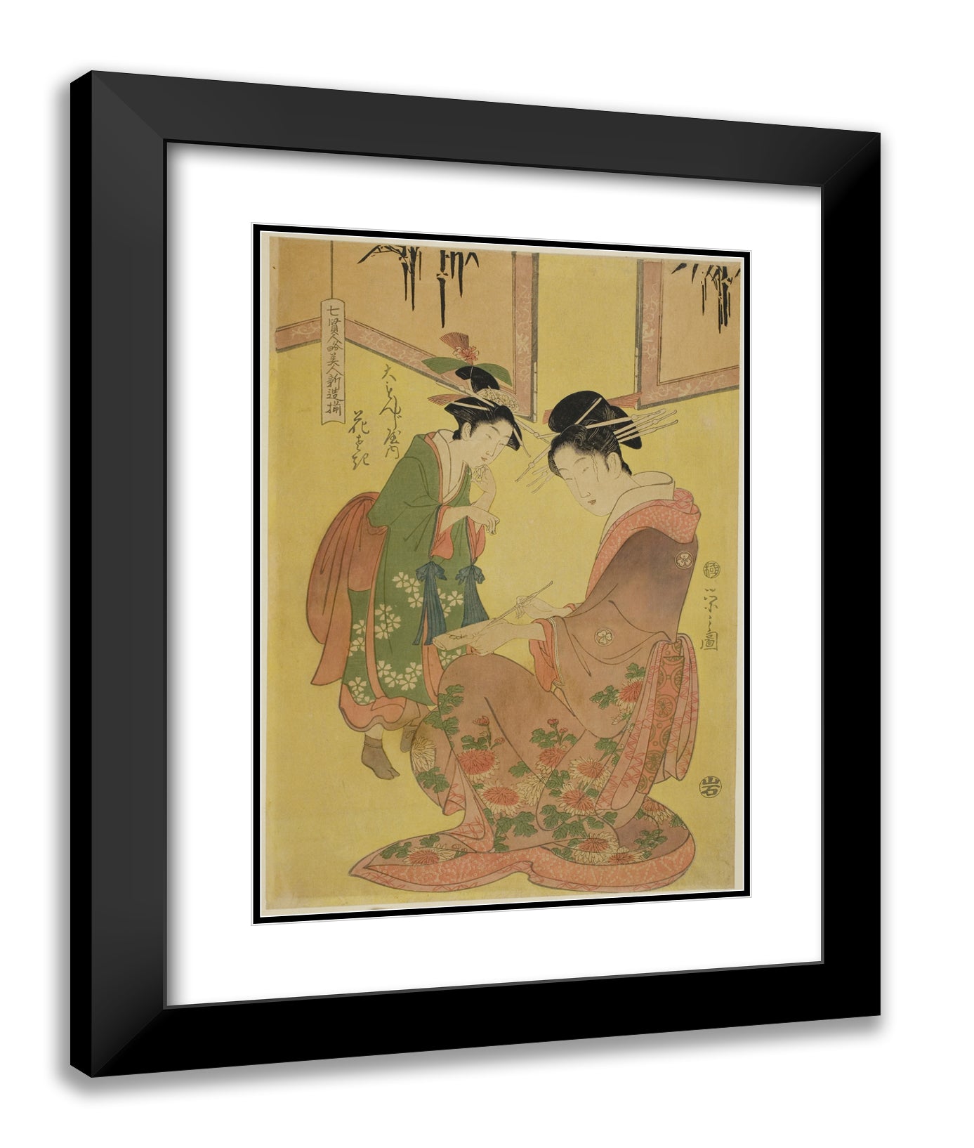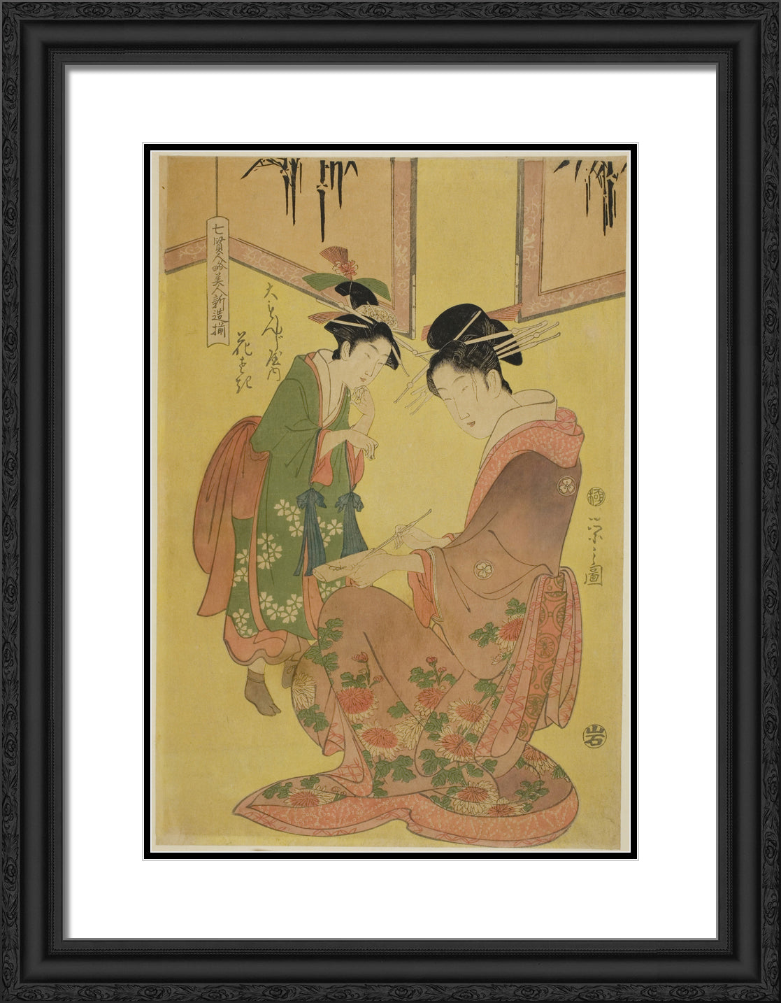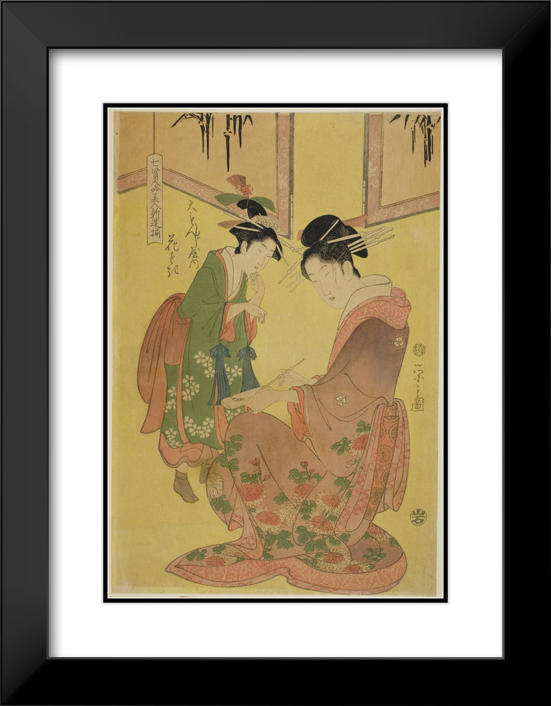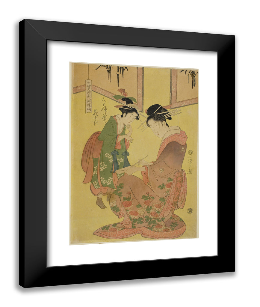 / Beauties Parodying the Seven Sages - A Selection of Younger Courtesans (Shichi kenjin yatsushi bijin shinzo zoroe): Hanasaki of the Daimonjiya by Chobunsai Eishi