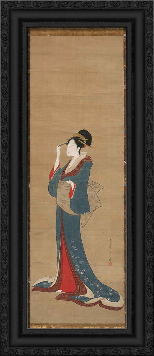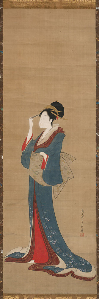 Beauty Replacing Her Hairpin by Chobunsai Eishi