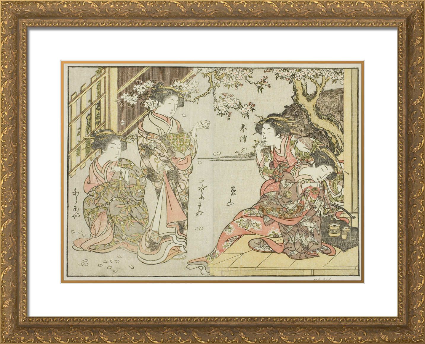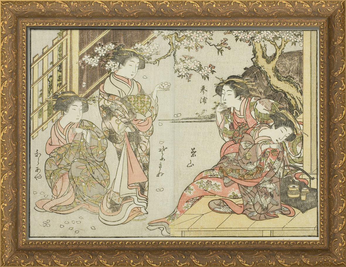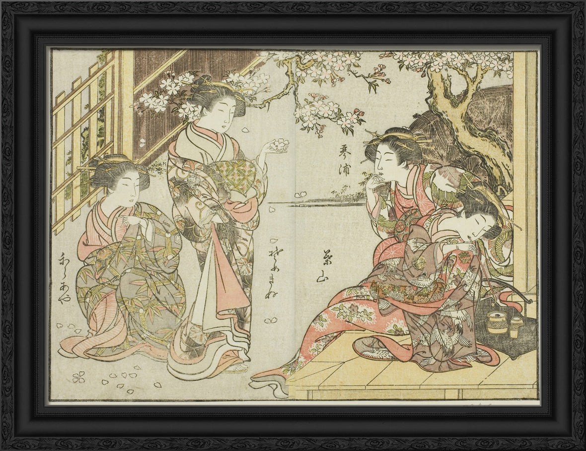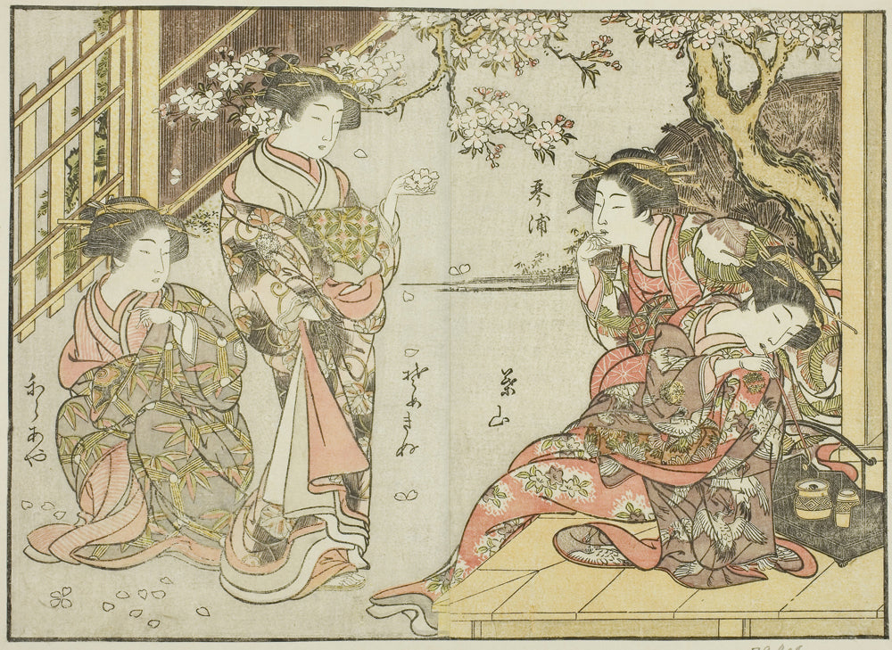 • Courtesans of the Asahimaruya, from the book "Mirror of Beautiful Women of the Pleasure Quarters (Seiro bijin awase sugata kagami)," vol. 1 by Katsukawa Shunsho