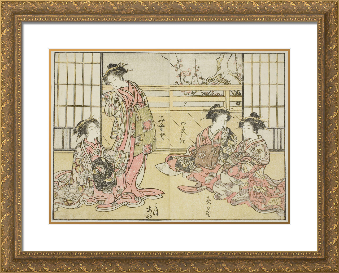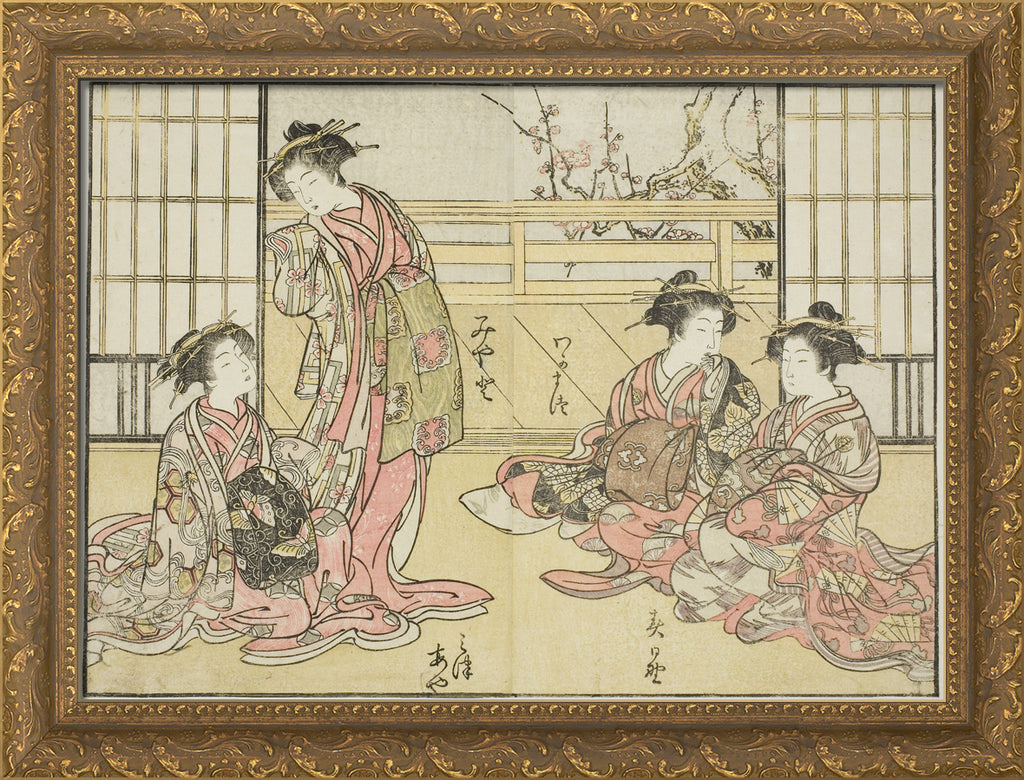 / Courtesans of the Kadotamaya, from the book "Mirror of Beautiful Women of the Pleasure Quarters (Seiro bijin awase sugata kagami)," vol. 1 by Katsukawa Shunsho