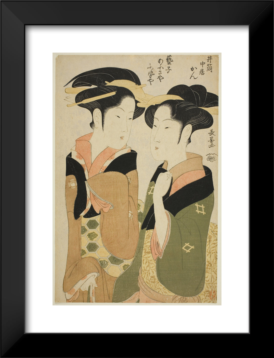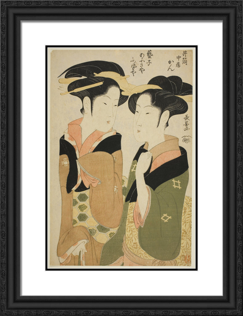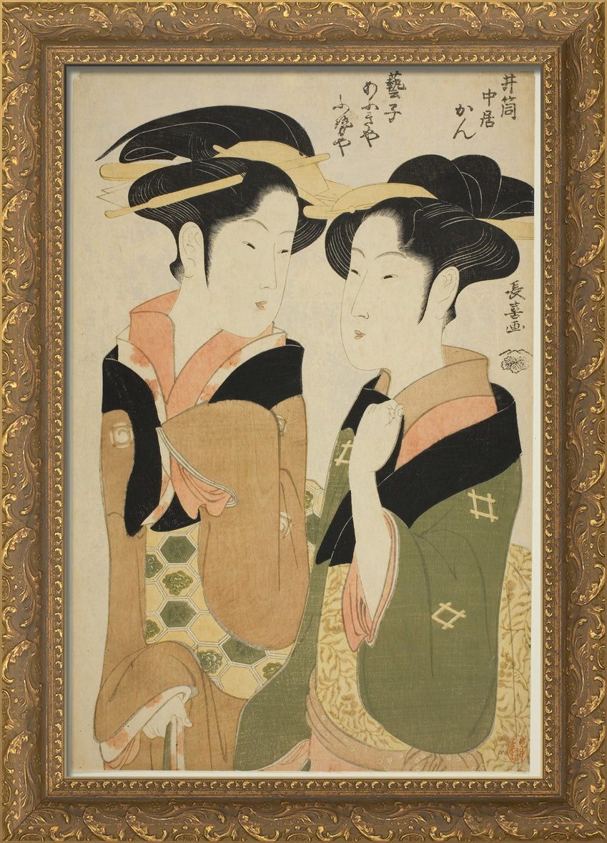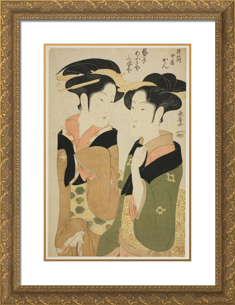 / Kan, a waitress of the Izutsuya, and the geisha Fuseya of the Ogiya by Eishosai Choki