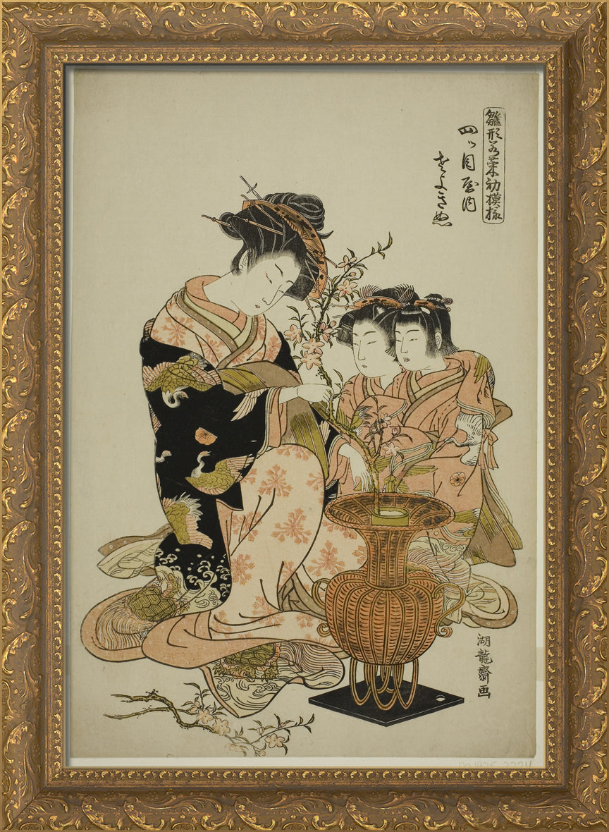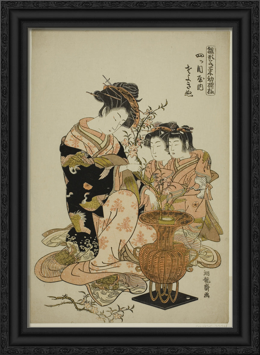 / Sayoginu of the Yotsumeya, from the series "Models for Fashion: New Designs as Fresh as Young Leaves (Hinagata wakana hatsu moyo)" by Isoda Koryusai