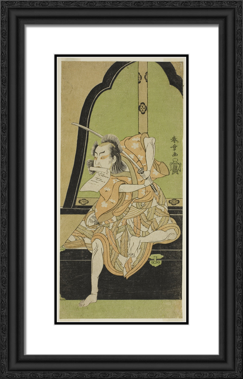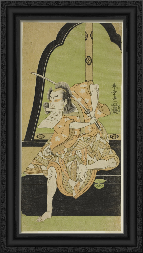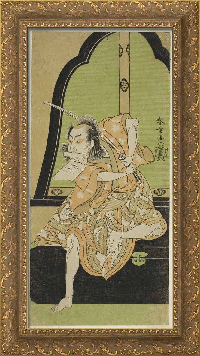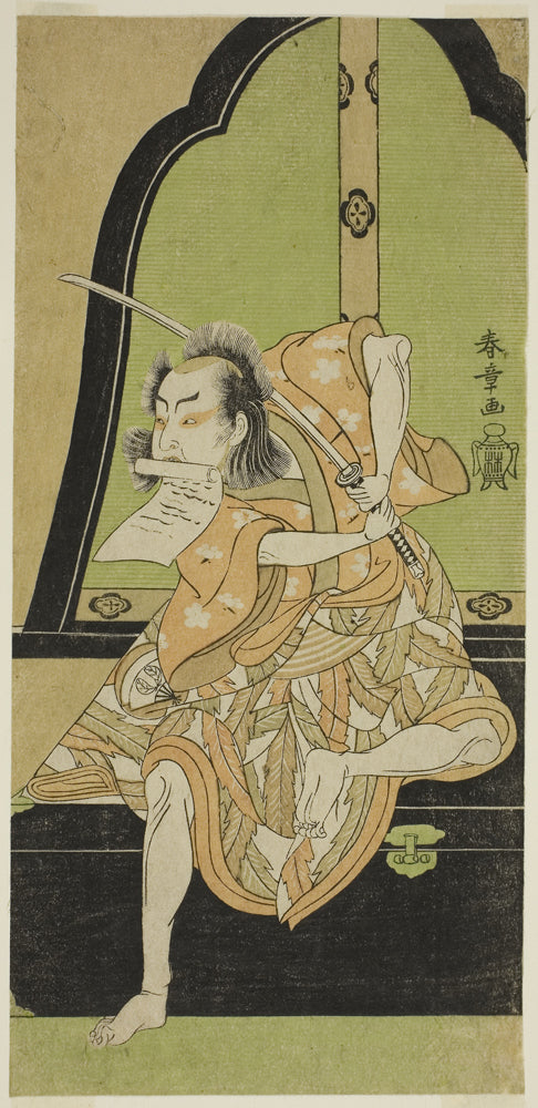 / The Actor Onoe Kikugoro I as Ukishima Danjo (?) in the Play Shinasadame Soma no Mombi (?), Performed at the Ichimura Theater (?) in the Seventh Month, 1770 (?) by Katsukawa Shunsho