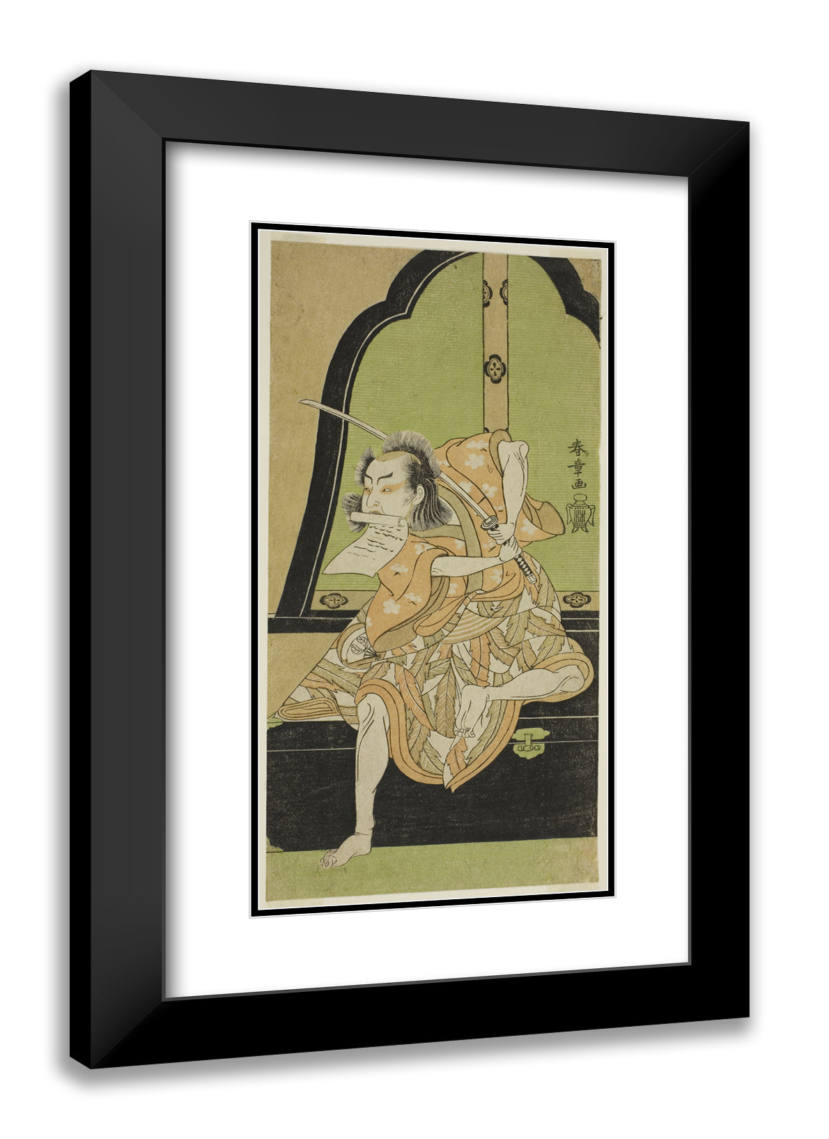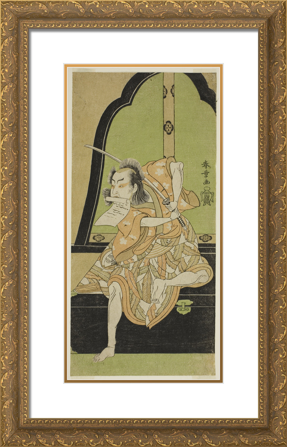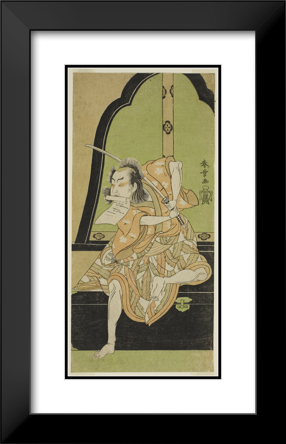 / The Actor Onoe Kikugoro I as Ukishima Danjo (?) in the Play Shinasadame Soma no Mombi (?), Performed at the Ichimura Theater (?) in the Seventh Month, 1770 (?) by Katsukawa Shunsho