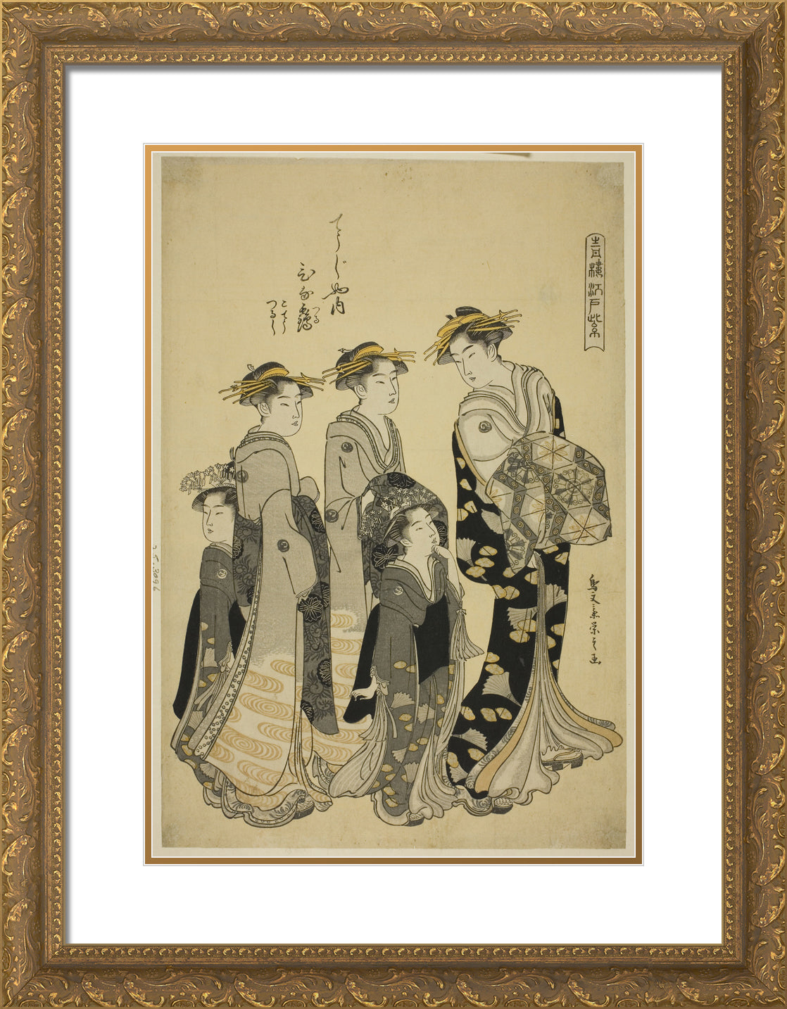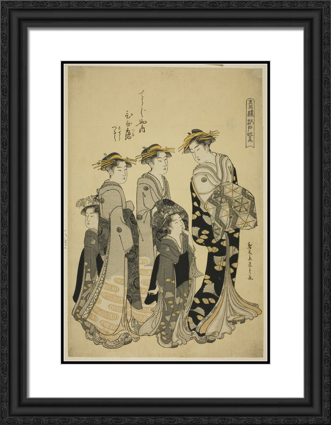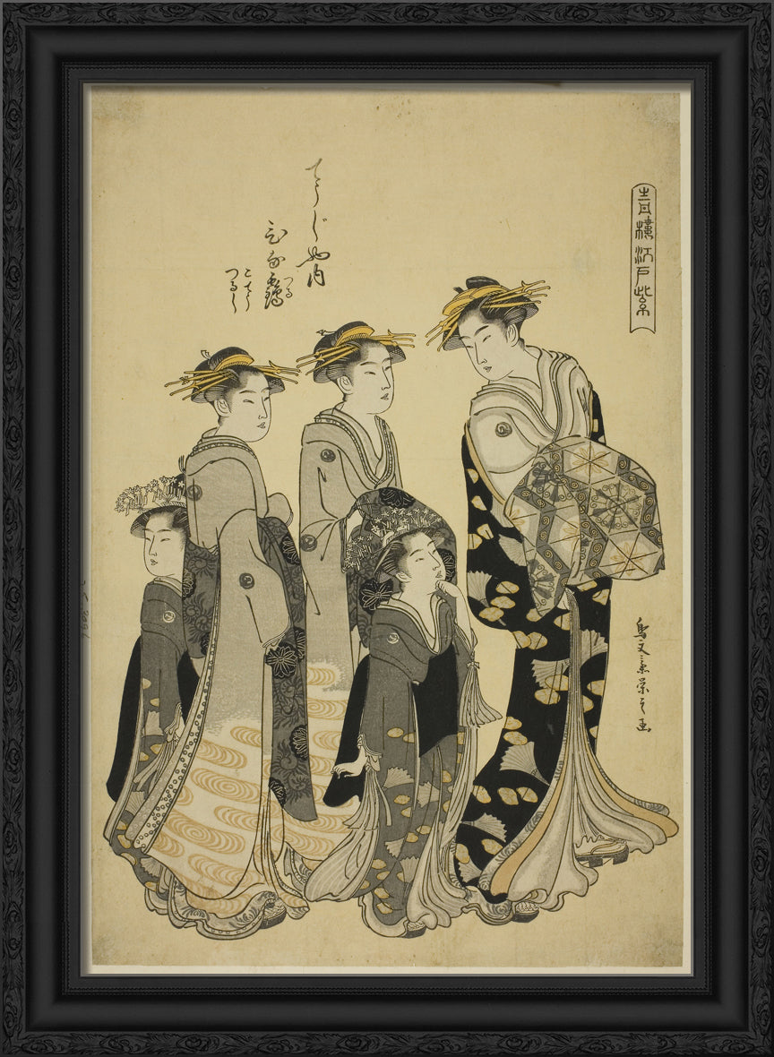 / The Courtesan Hinazuru of the Chojiya with her Attendants, from the series "Edo Purple in the Pleasure Quarters (Seiro Edo murasaki)" by Chobunsai Eishi