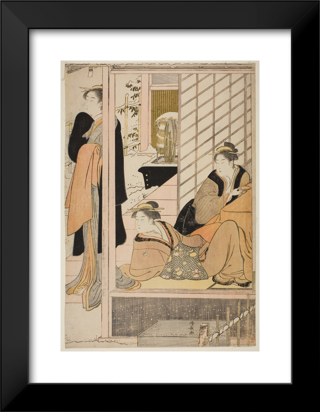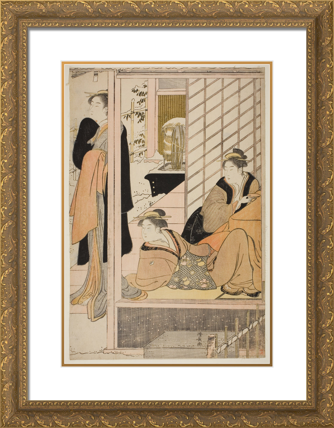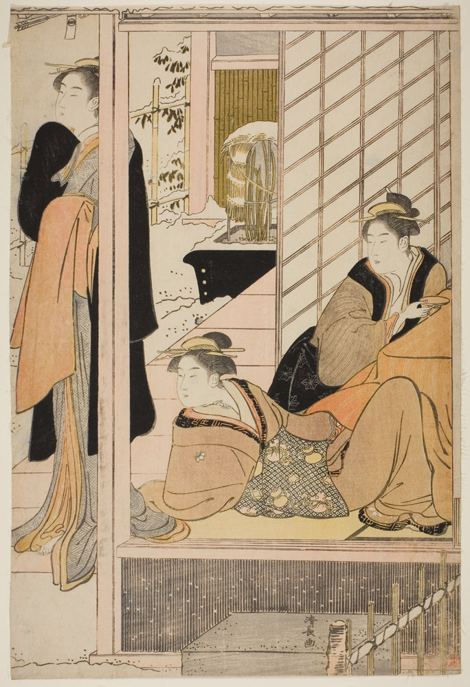 / Women Viewing a Snowy Garden from a Parlor by Torii Kiyonaga