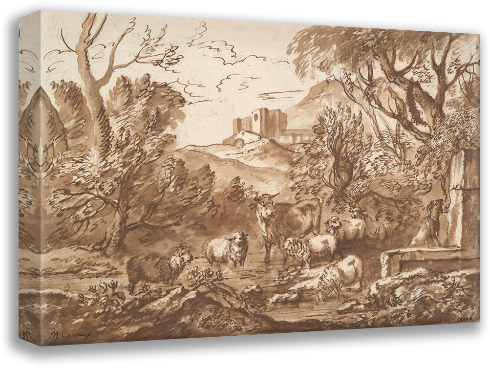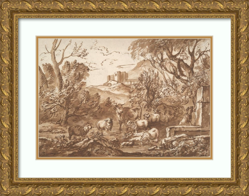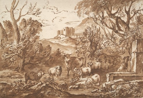 / Cattle in a Watering Place Near a Fountain Late (17th-Early 18th Century)