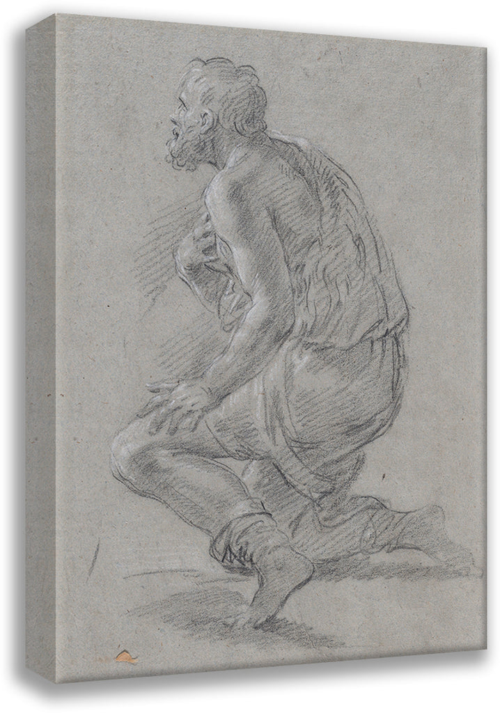 / Study of Male Figure Kneeling in a Three-Quarter View, Facing Left (A Shepherd) (18th Century)