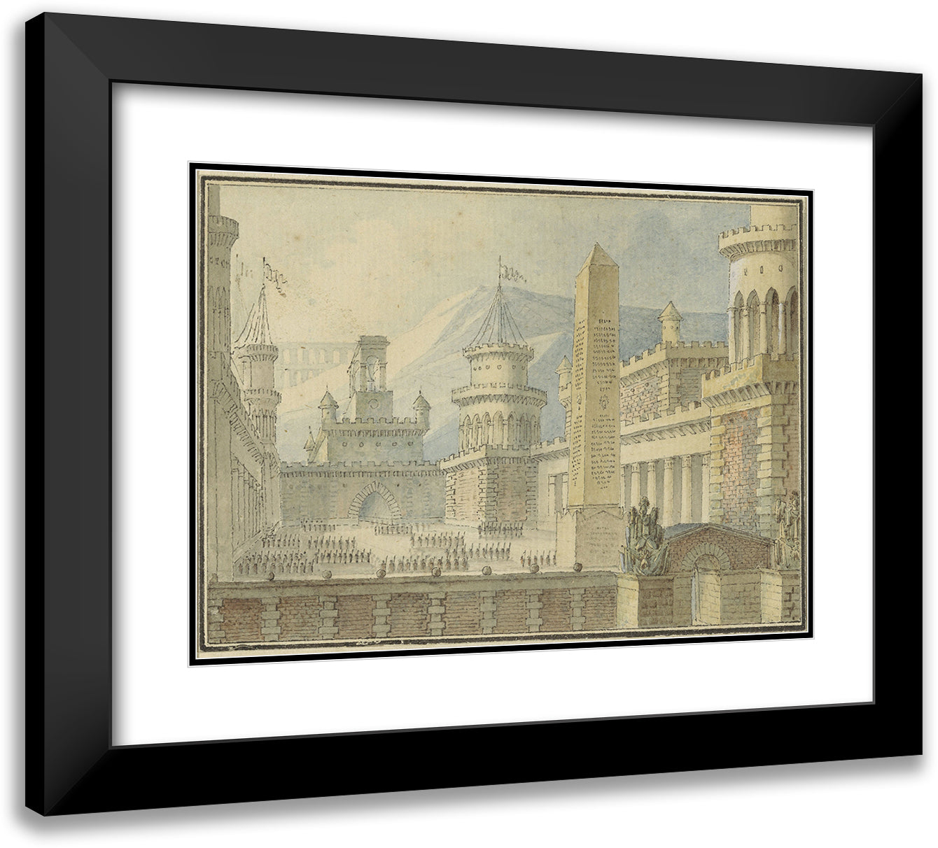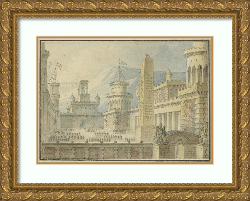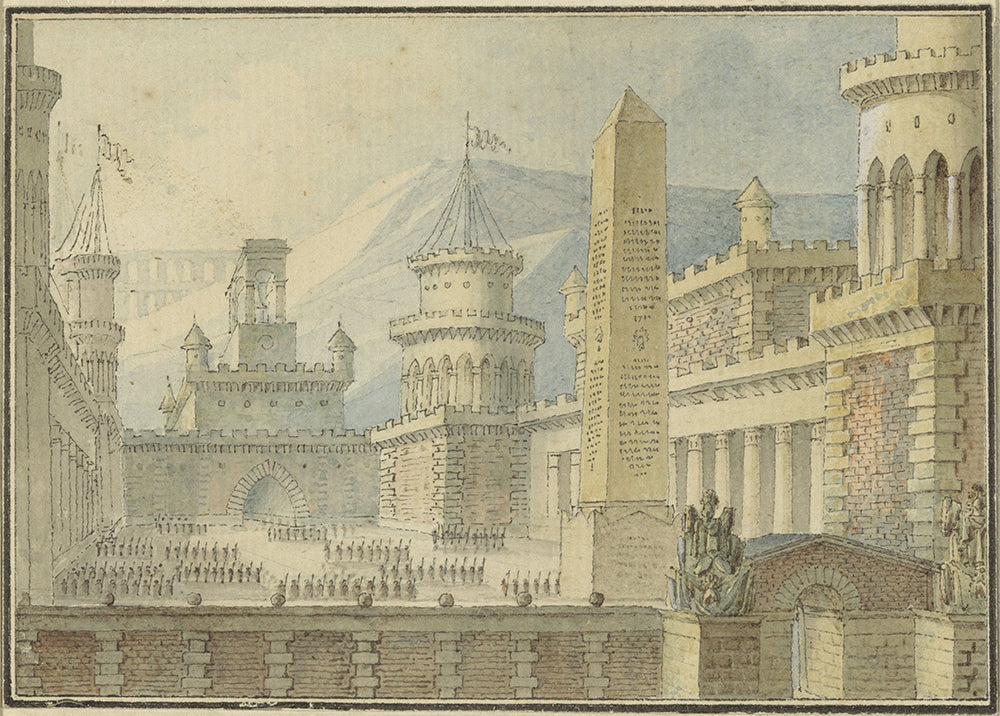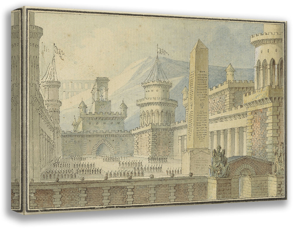 / Courtyard of a Reinforced Castle with Obelisk, Troops in the Line (1800 - 1900)