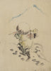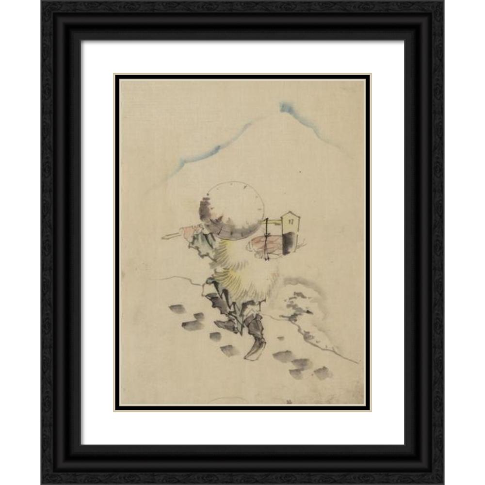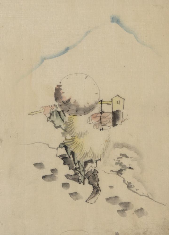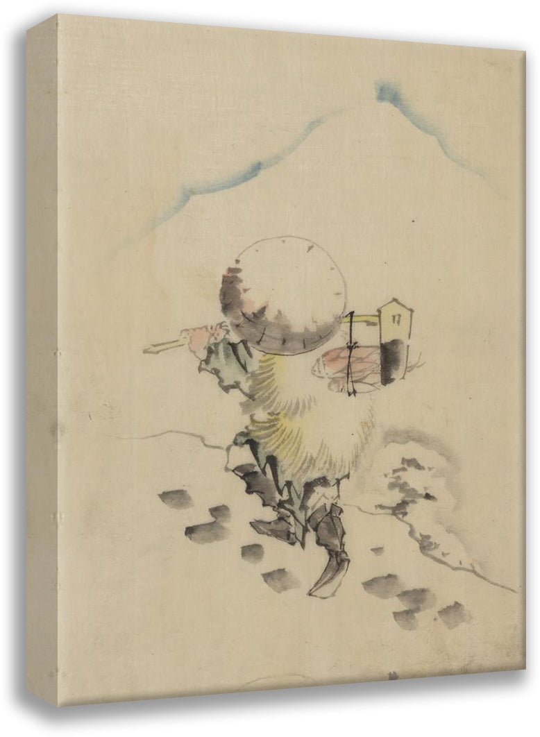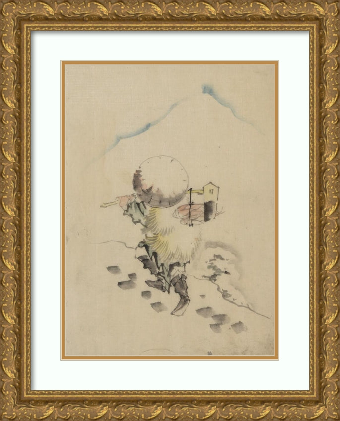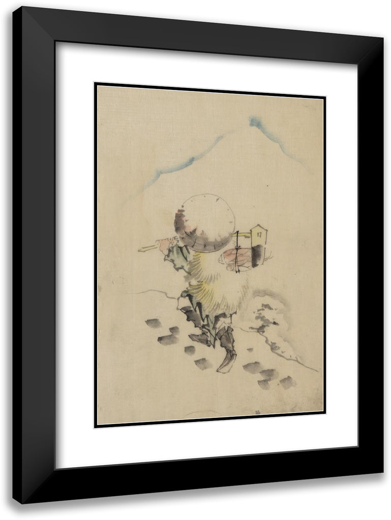 / A Man, Wearing a Conical Hat, a Straw or Feather Outer Garment, and Boots, is Carrying a Long-Handled Tool (1830-1850)