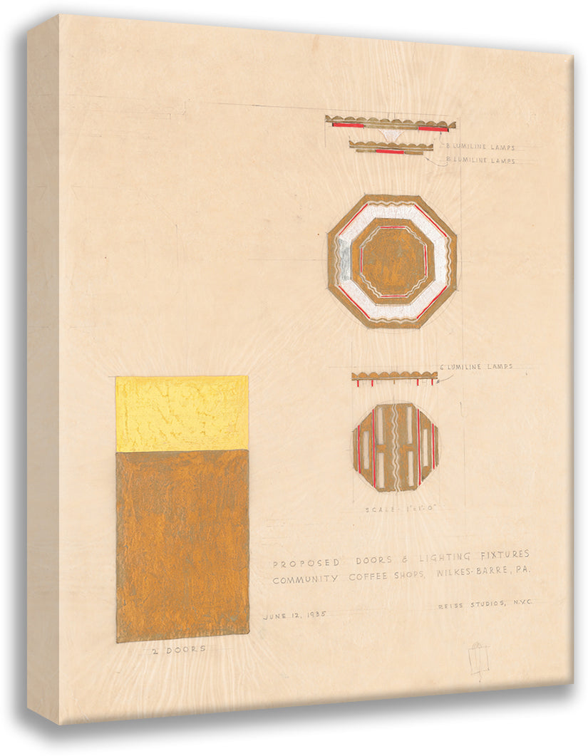 / Design Drawings for Community Coffee Shops, Wilkes-Barre, Pa.) (Proposed Doors and Lighting Fixtures, Lumiline Light Fixture and Door, Elevations and Plan (1935)