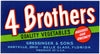 4 Brothers Quality Vegetables Label (1930-1950)