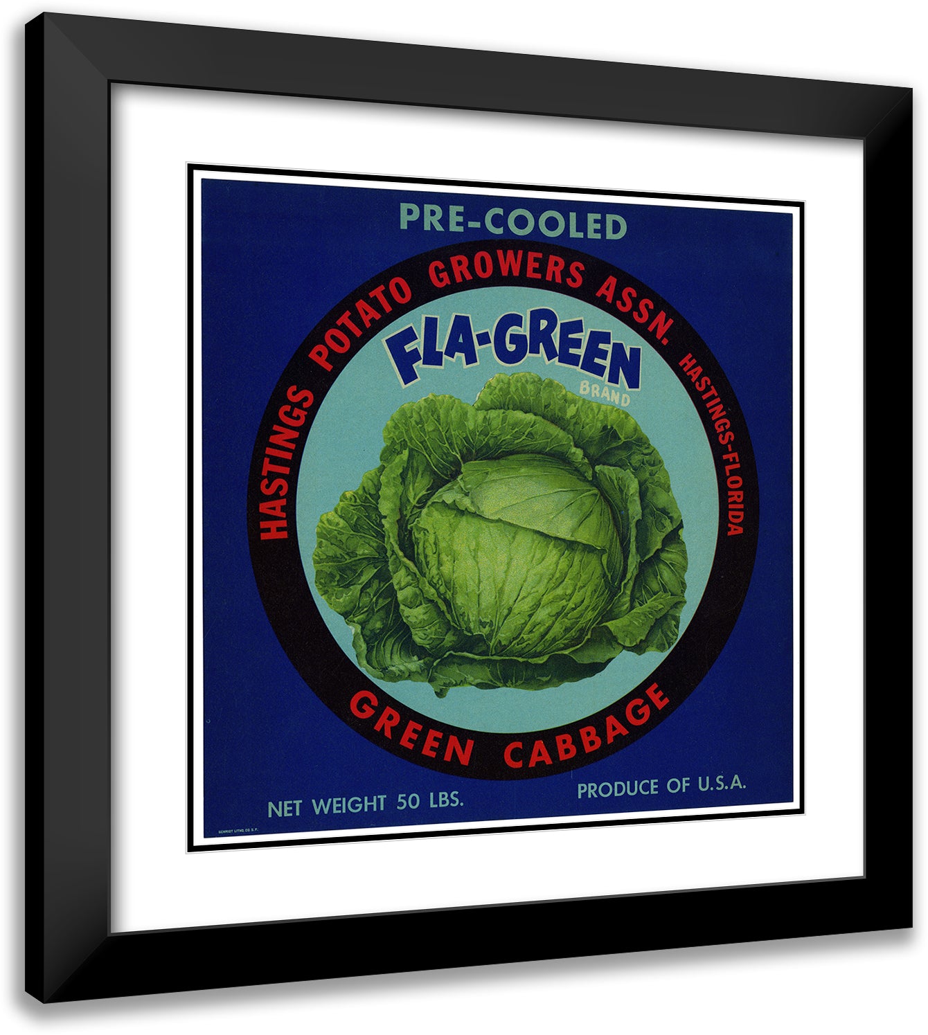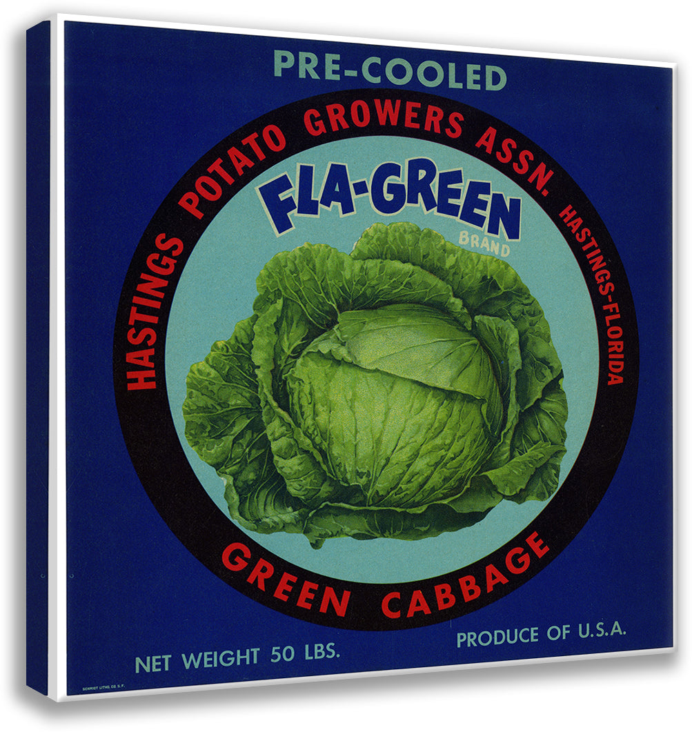 Fla-Green Brand Green Cabbage Label (1930-1950)