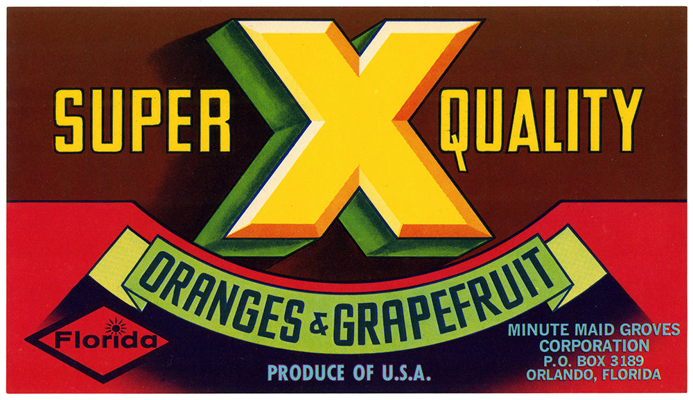 Super X Quality Oranges and Grapefruit Label (1930-1950)
