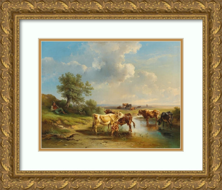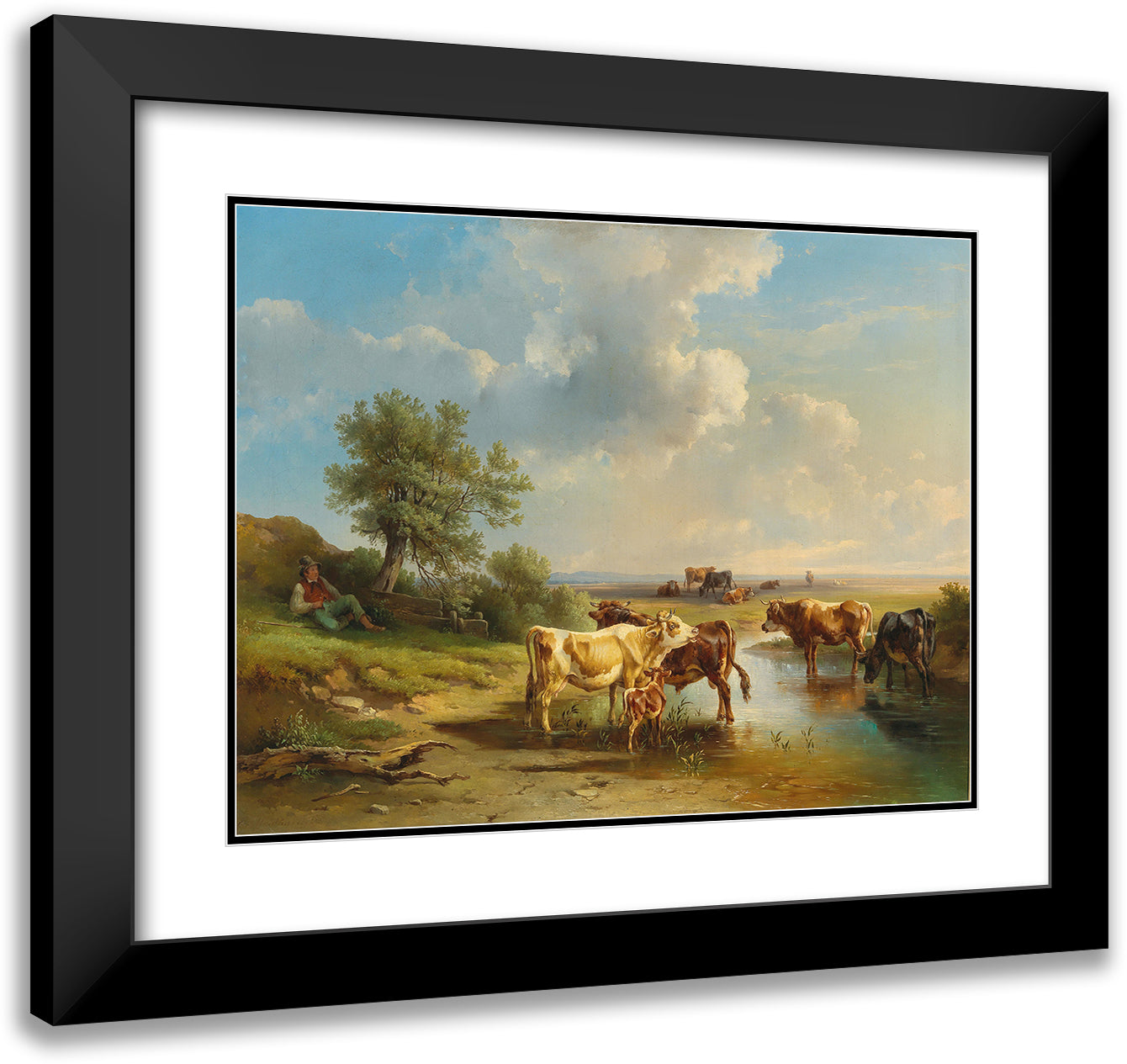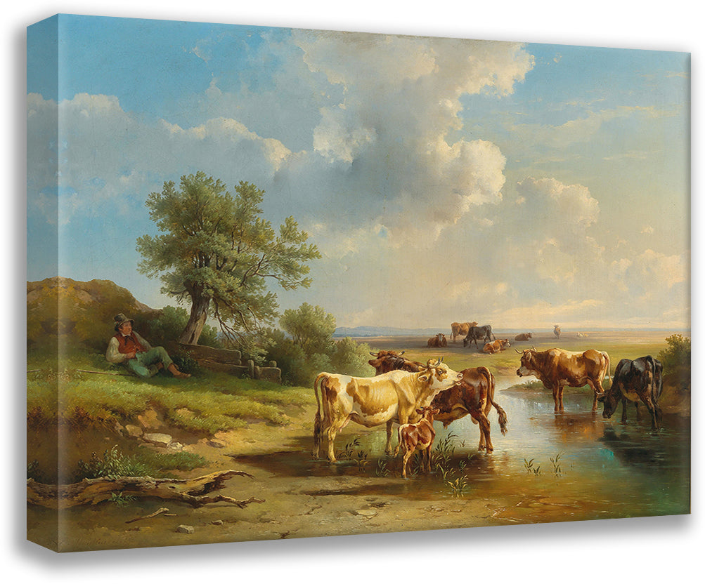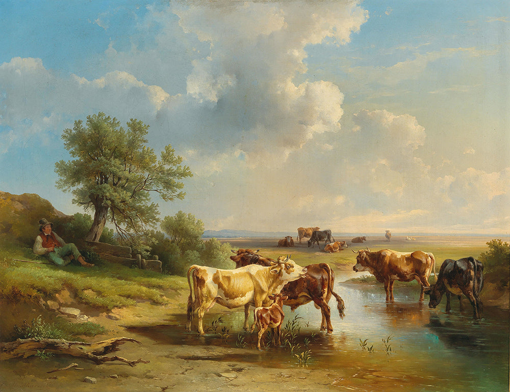 Herdsman with Herd of Cows on the Banks of the Stream