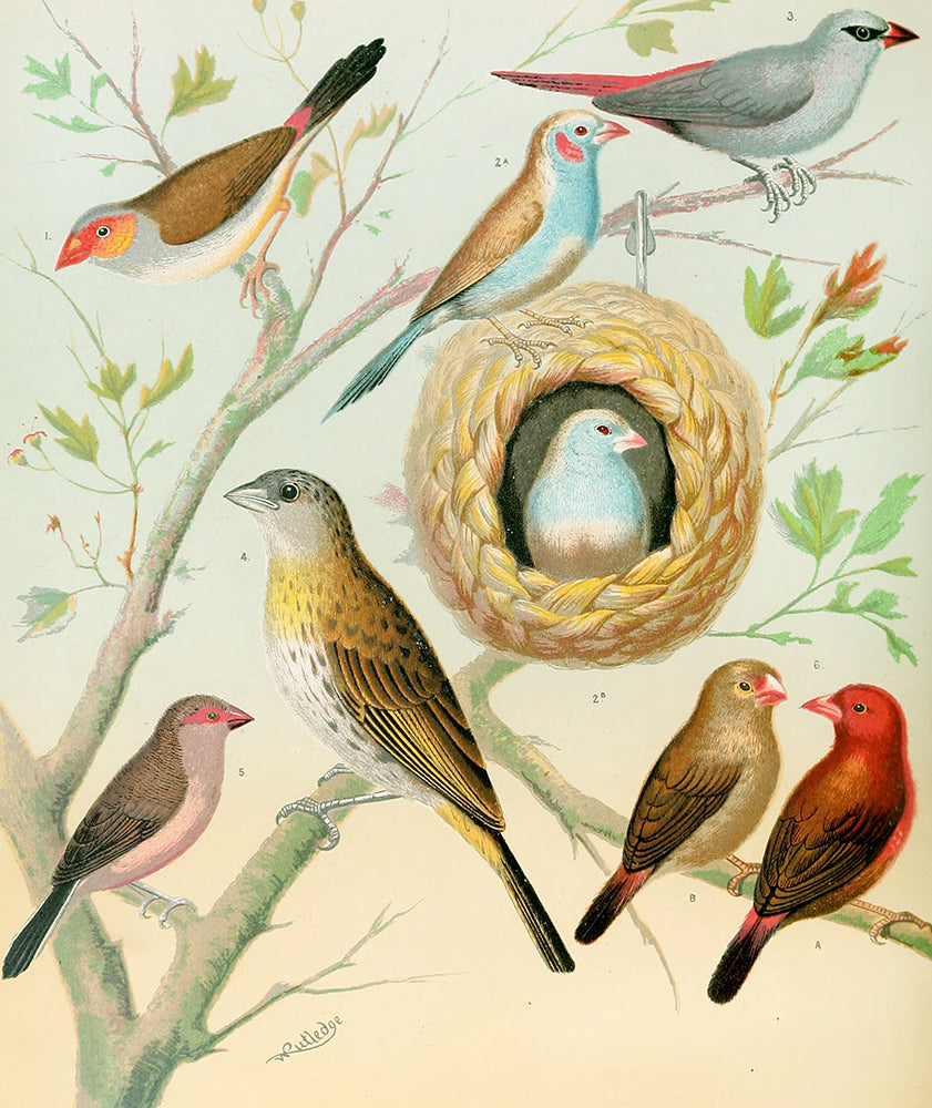 Waxbills, Saffron Finch, African Fire Flnch (1878)