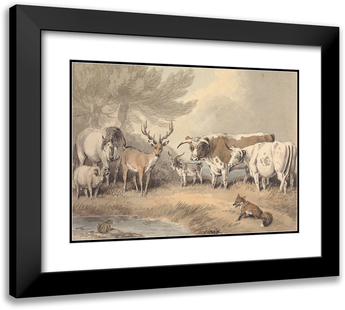 A Frog Confronting a Circle of Animals