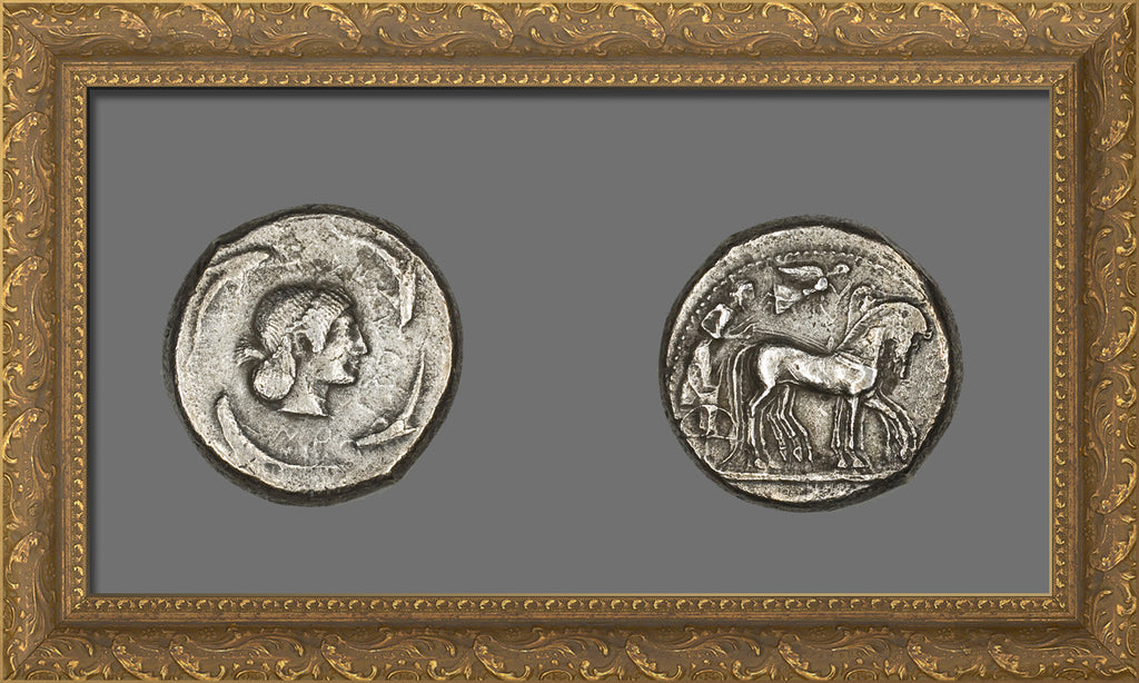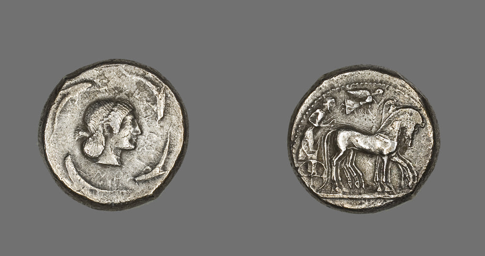 / Tetradrachm (Coin) Depicting Quadriga with Bearded Charioteer by Ancient Greek
