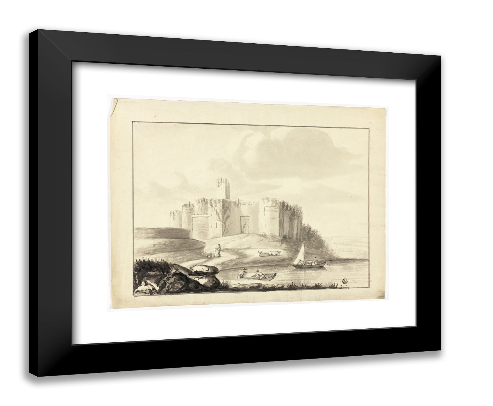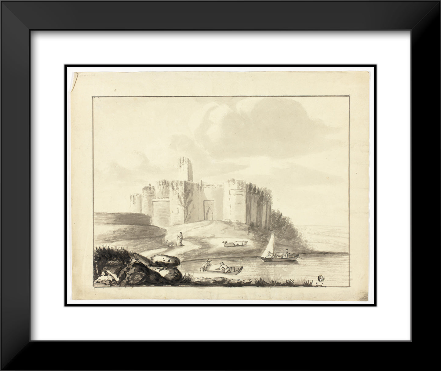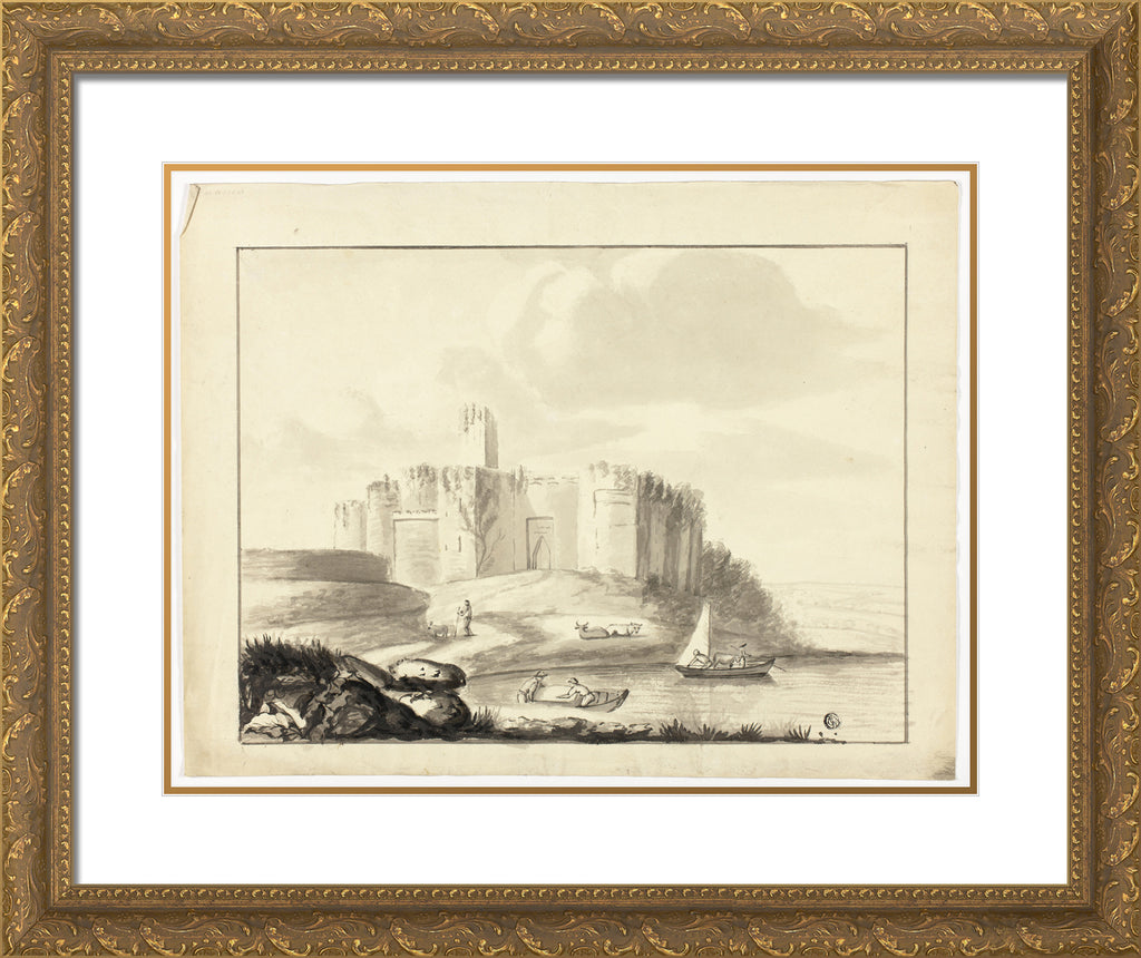 • Castle and Harbor with Boats by Artist Unknown