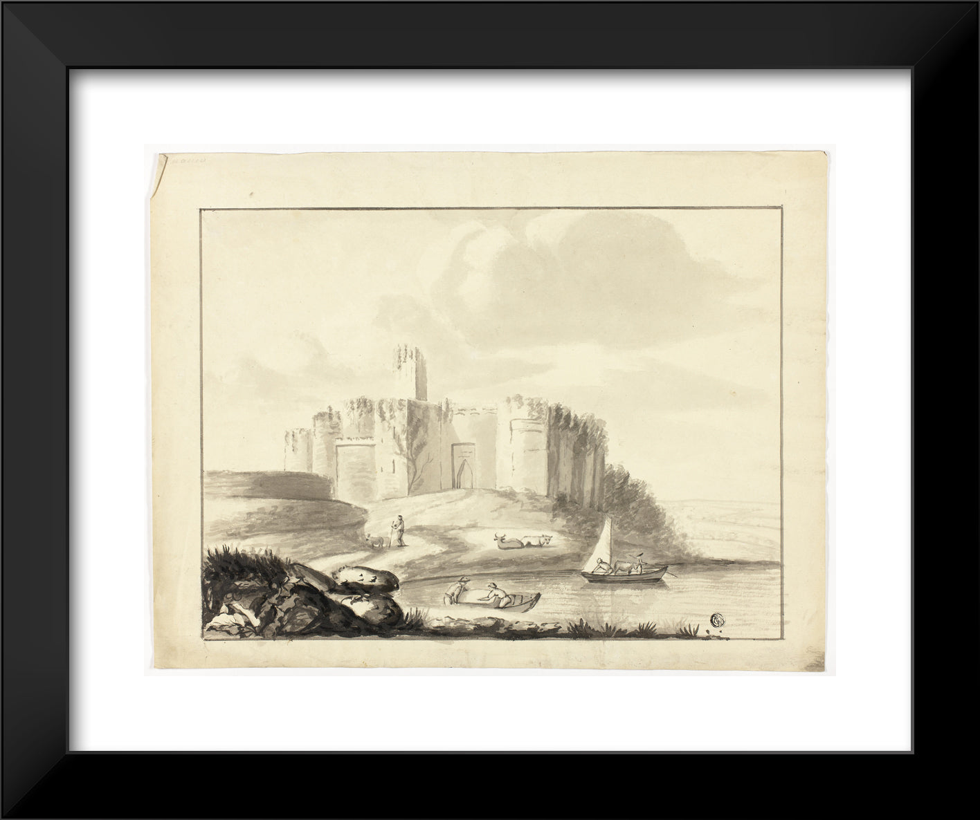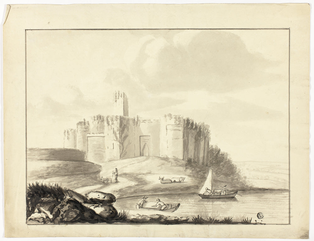 Castle and Harbor with Boats by Artist Unknown