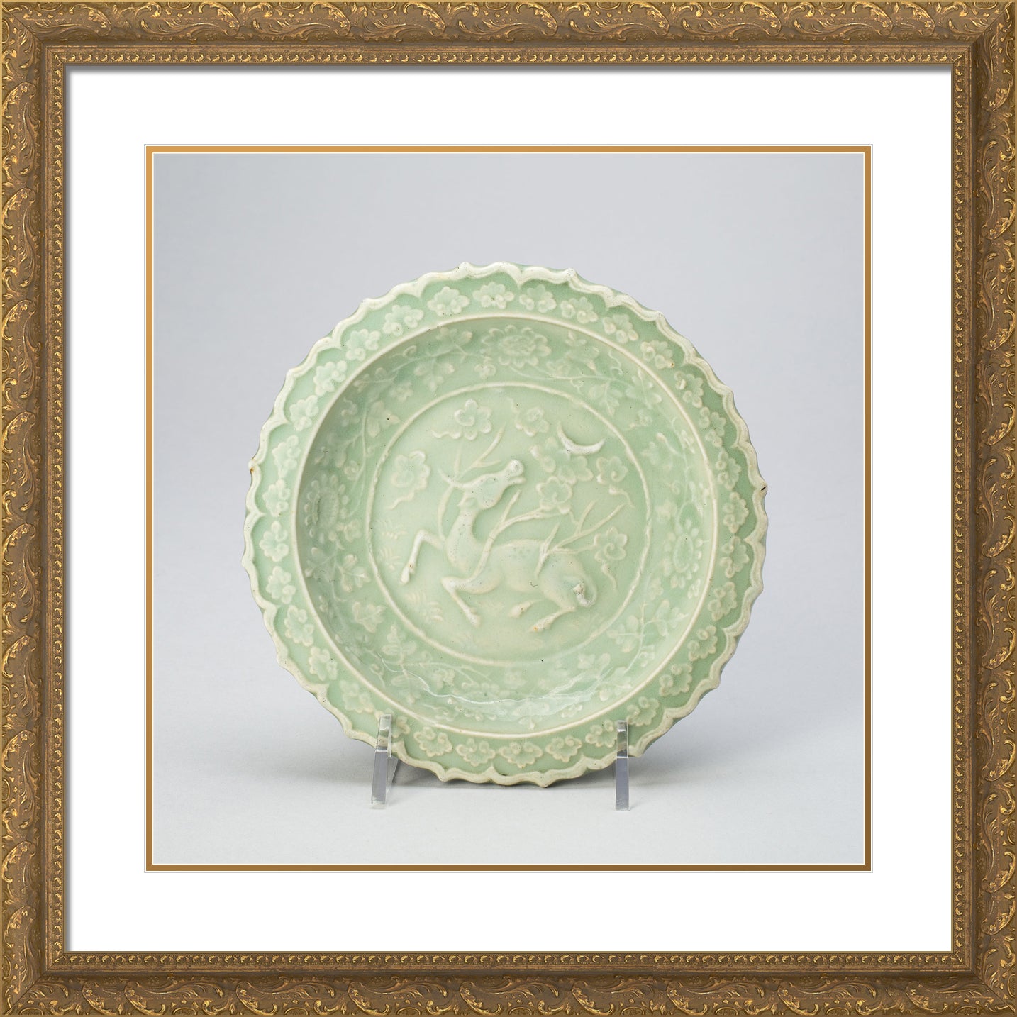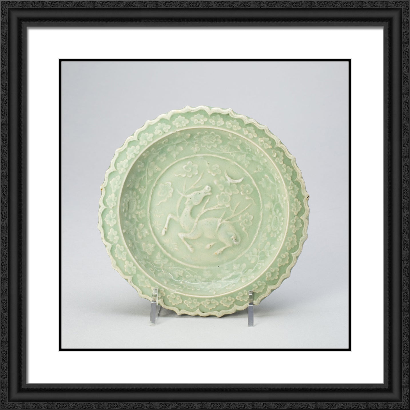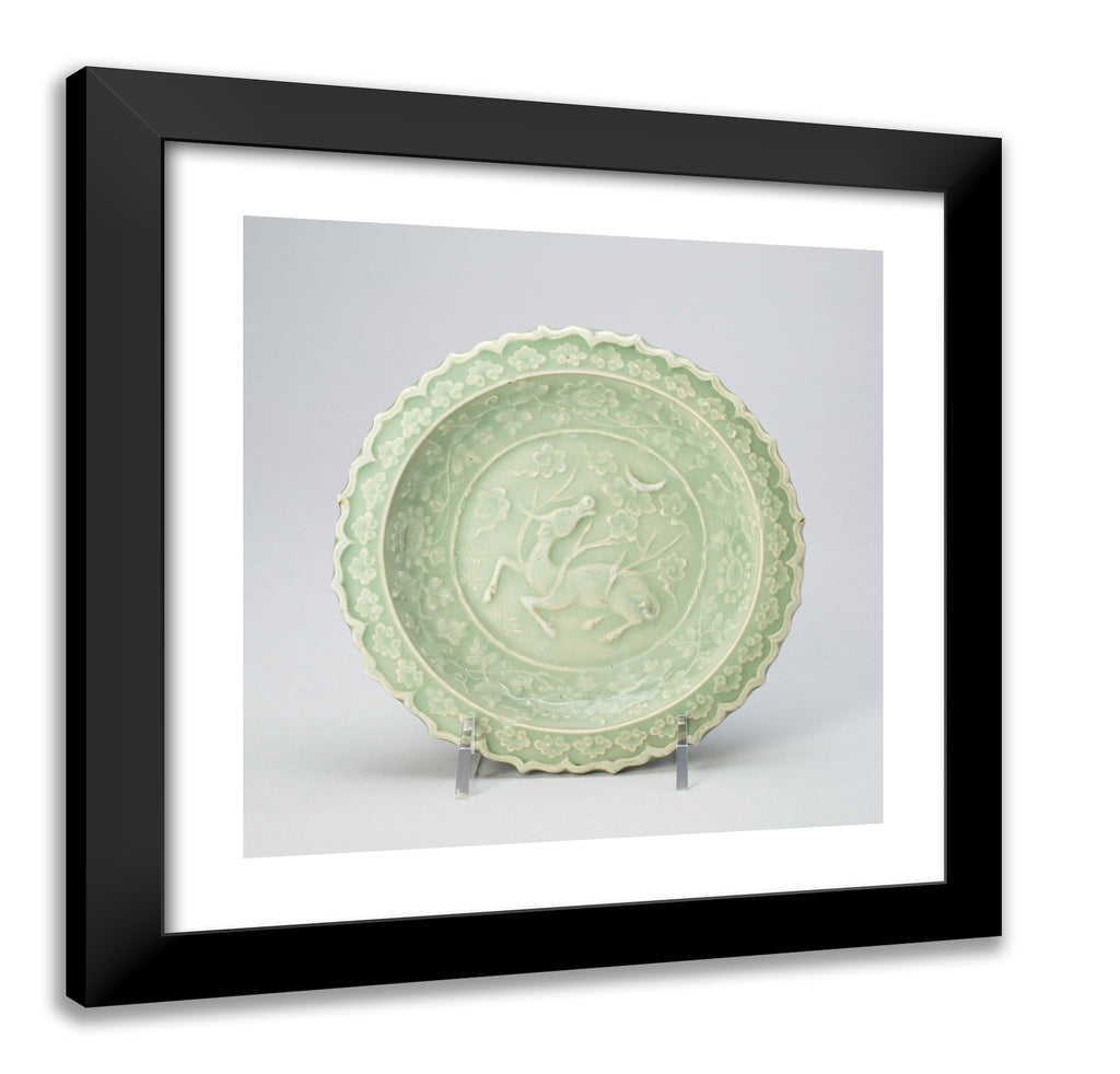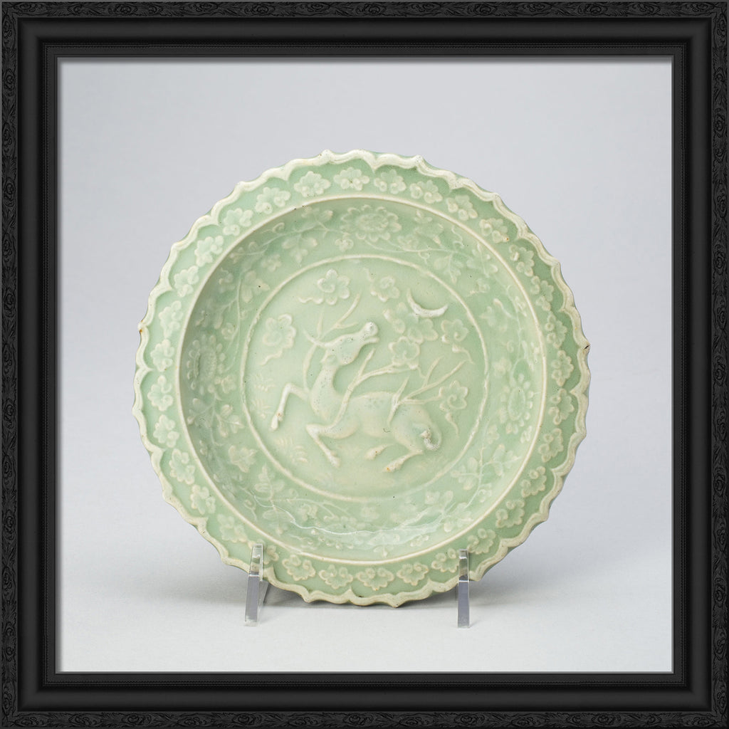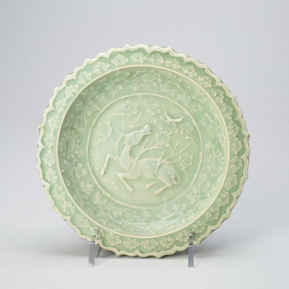 / Foliate Dish with Bovine (Xiniu) Gazing at a Crescent Moon by Artist Unknown