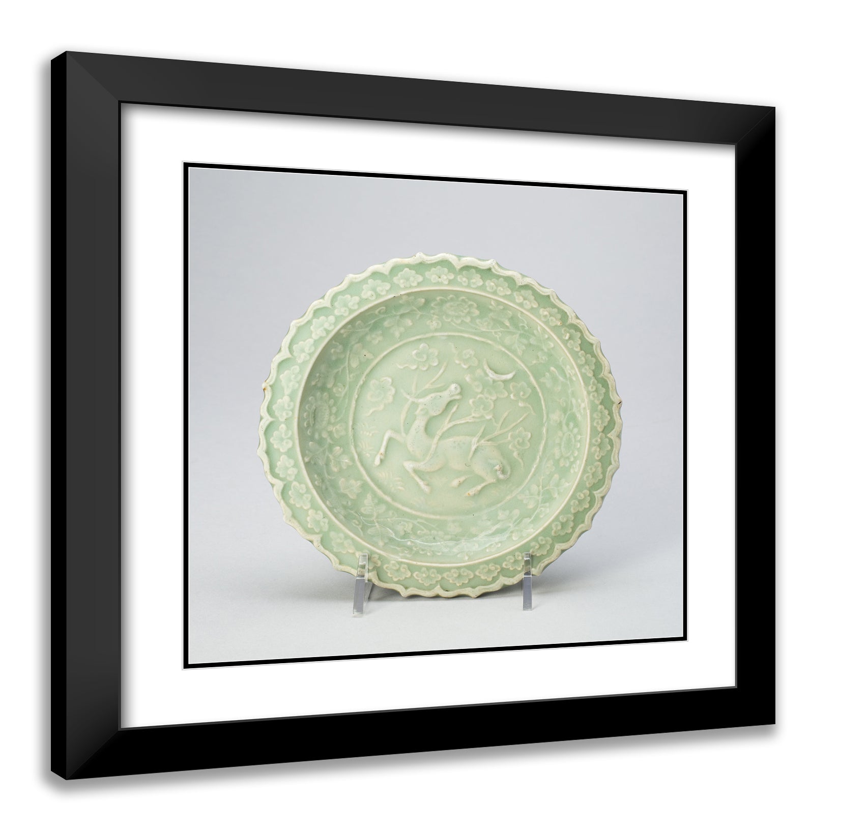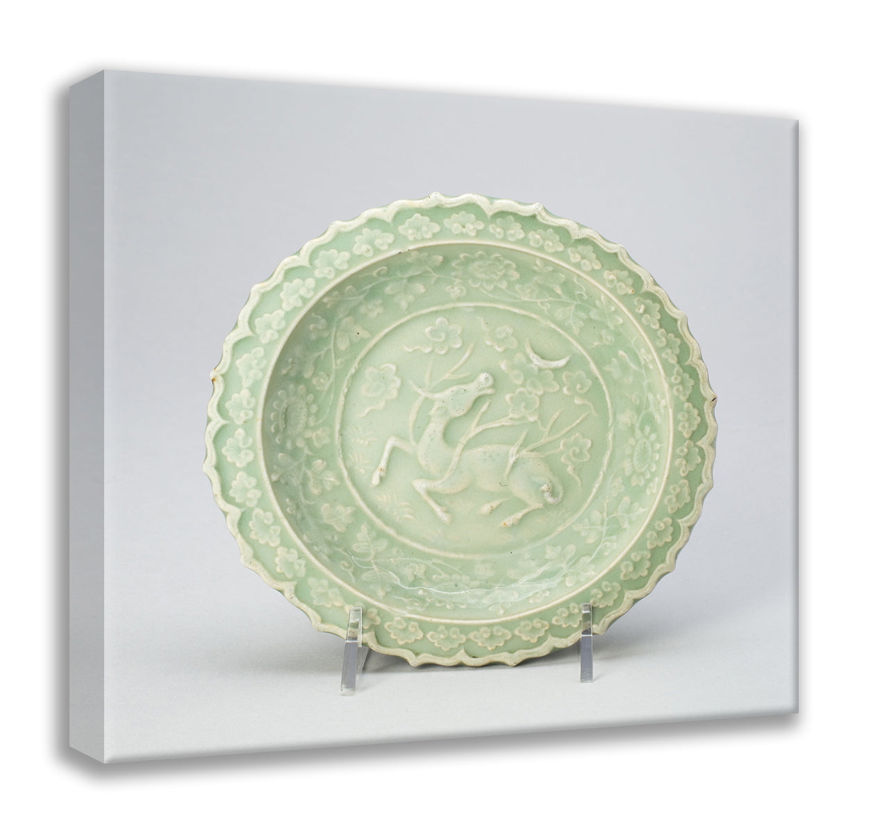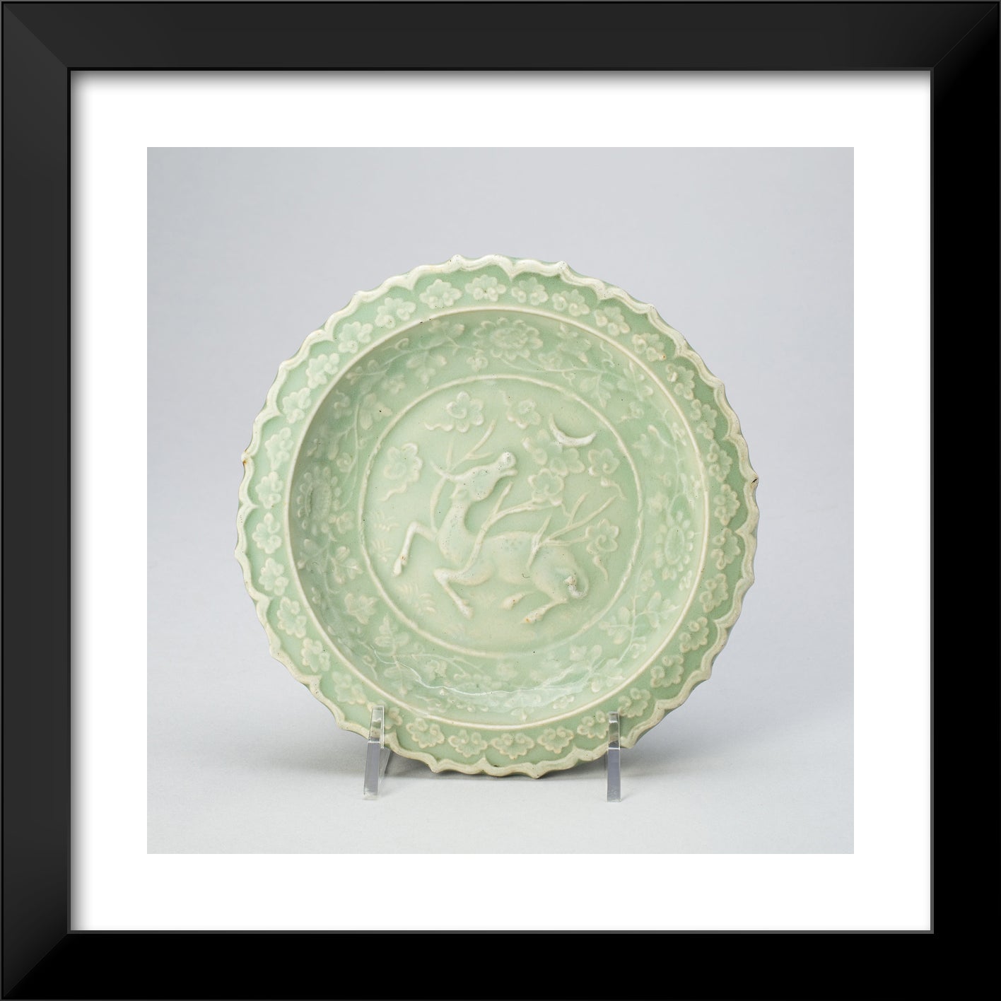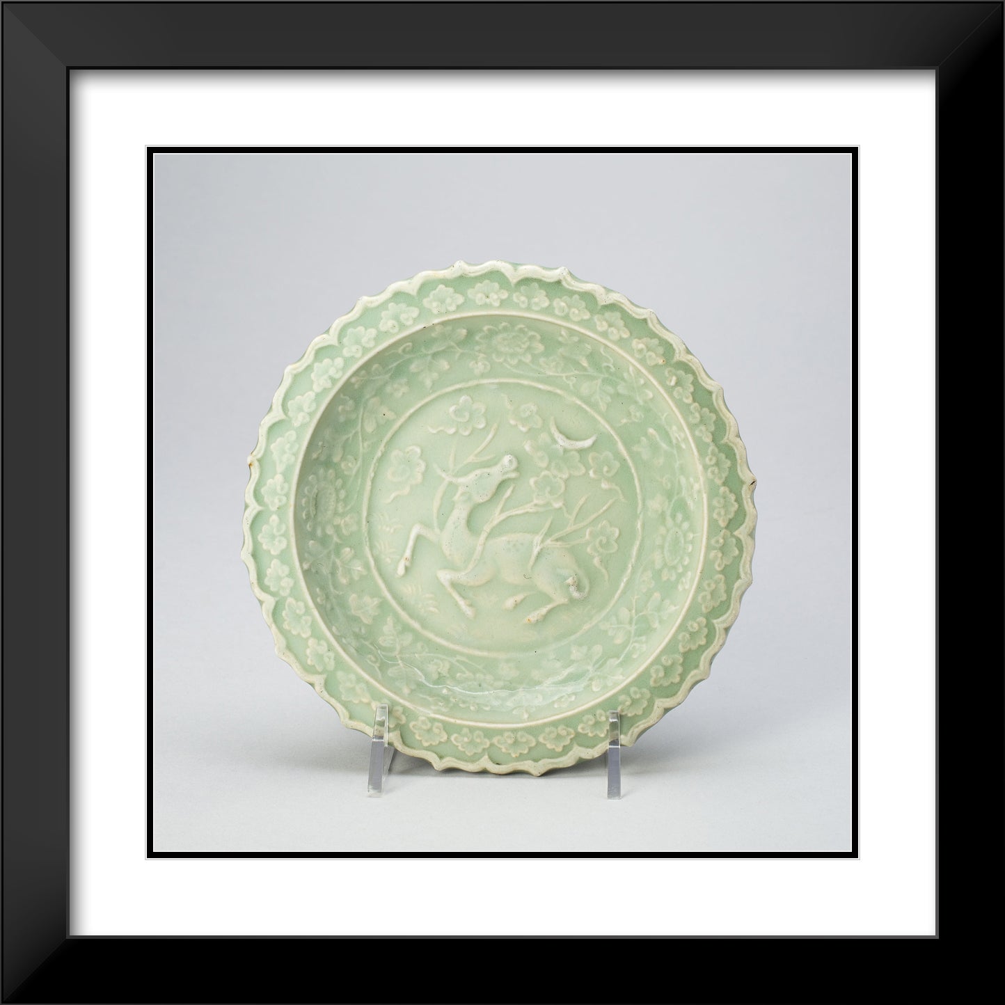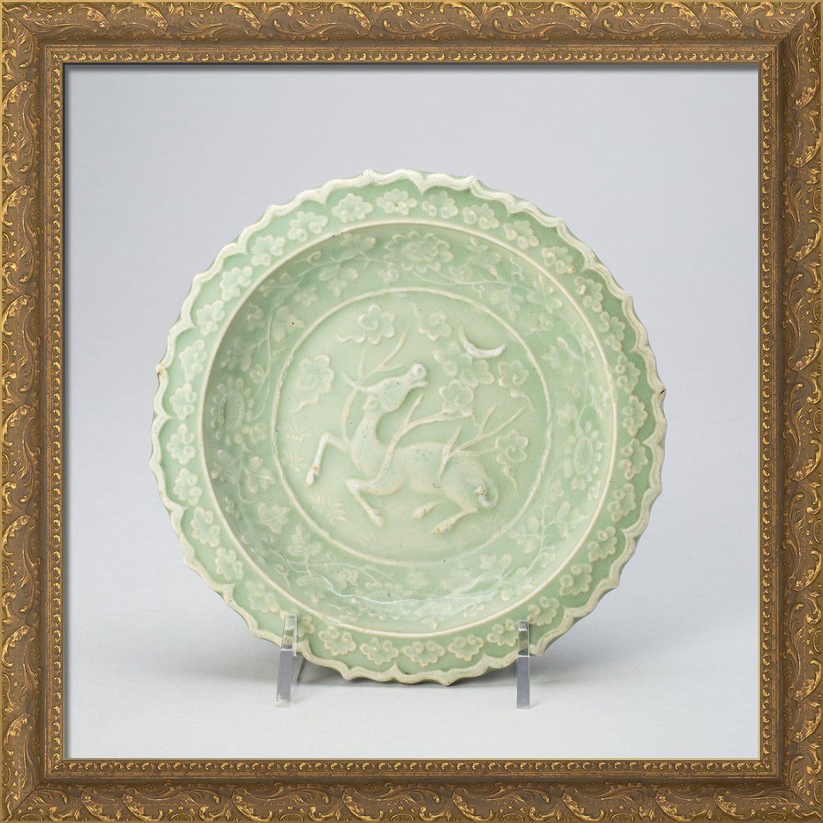 / Foliate Dish with Bovine (Xiniu) Gazing at a Crescent Moon by Artist Unknown