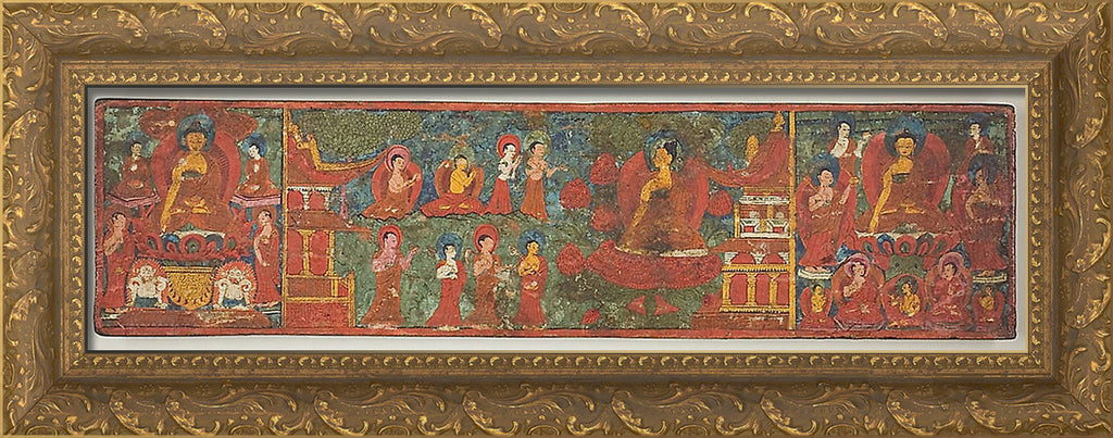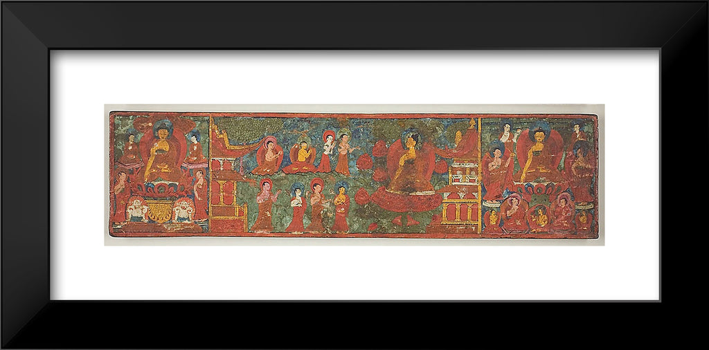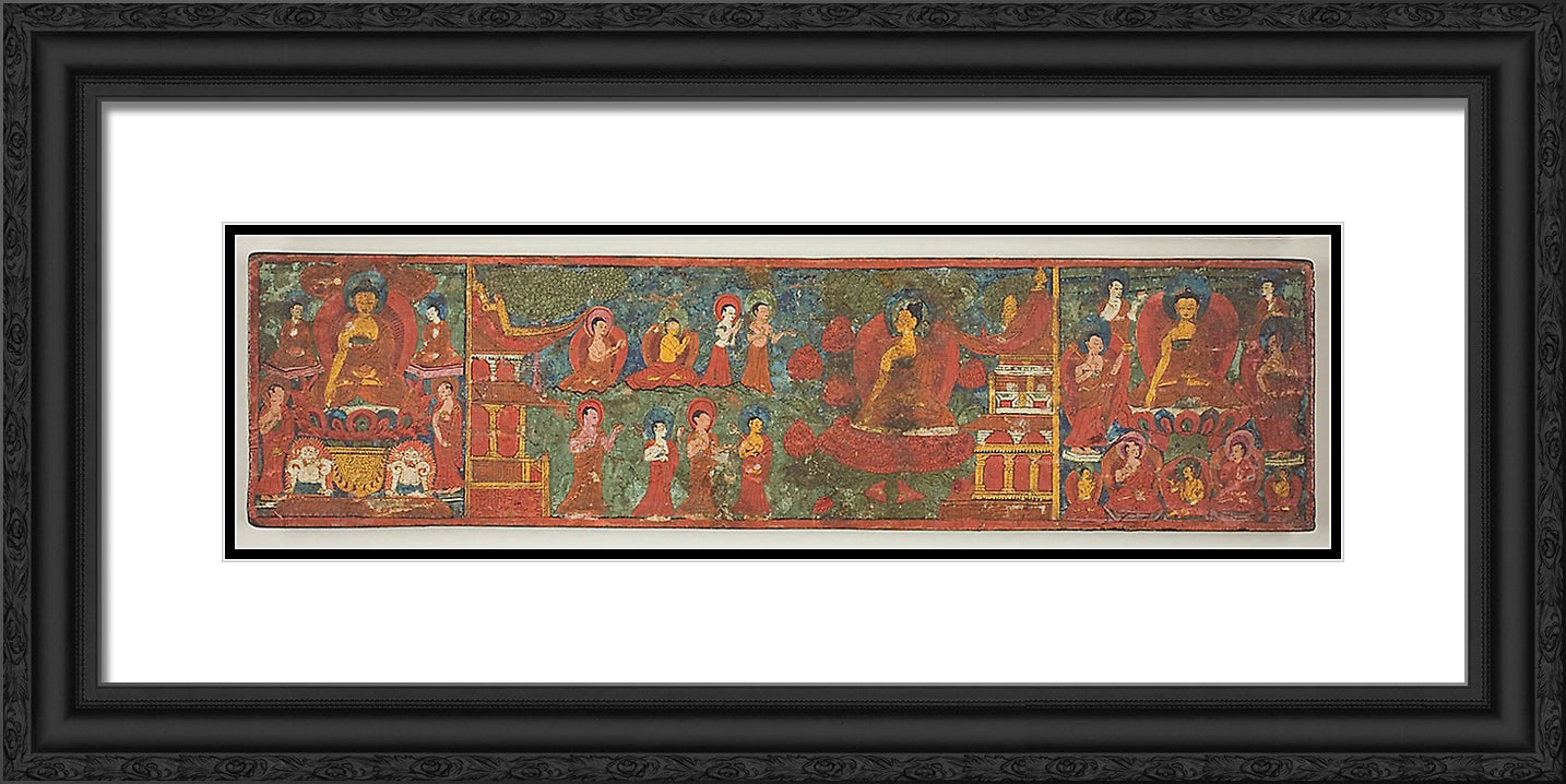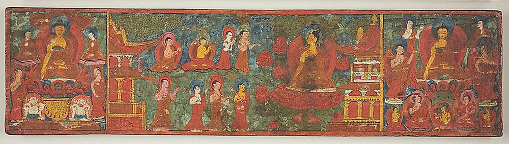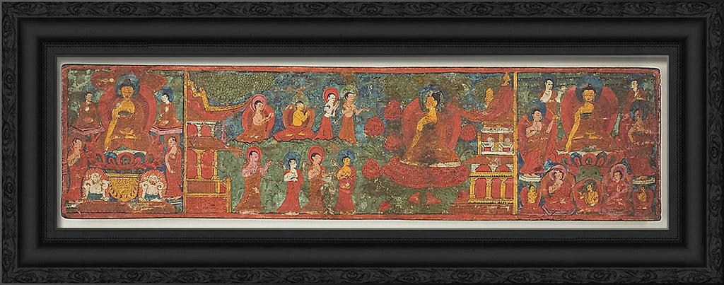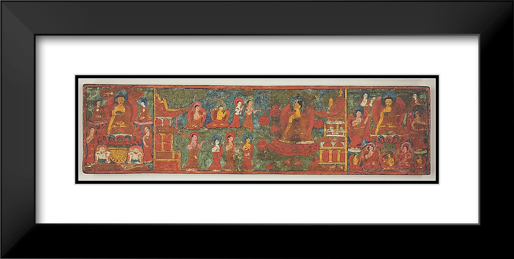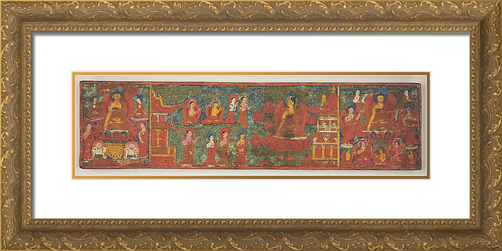 / One of a Pair of Manuscript Covers with Buddha Overcoming Temptation Surrounded by Disciples by Artist Unknown