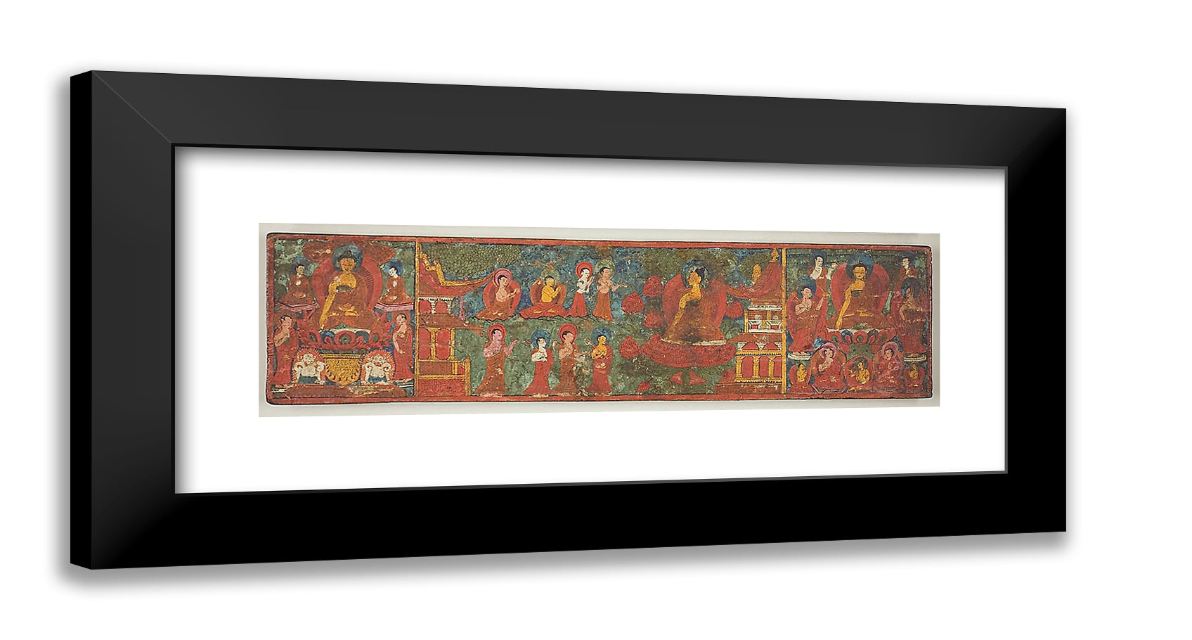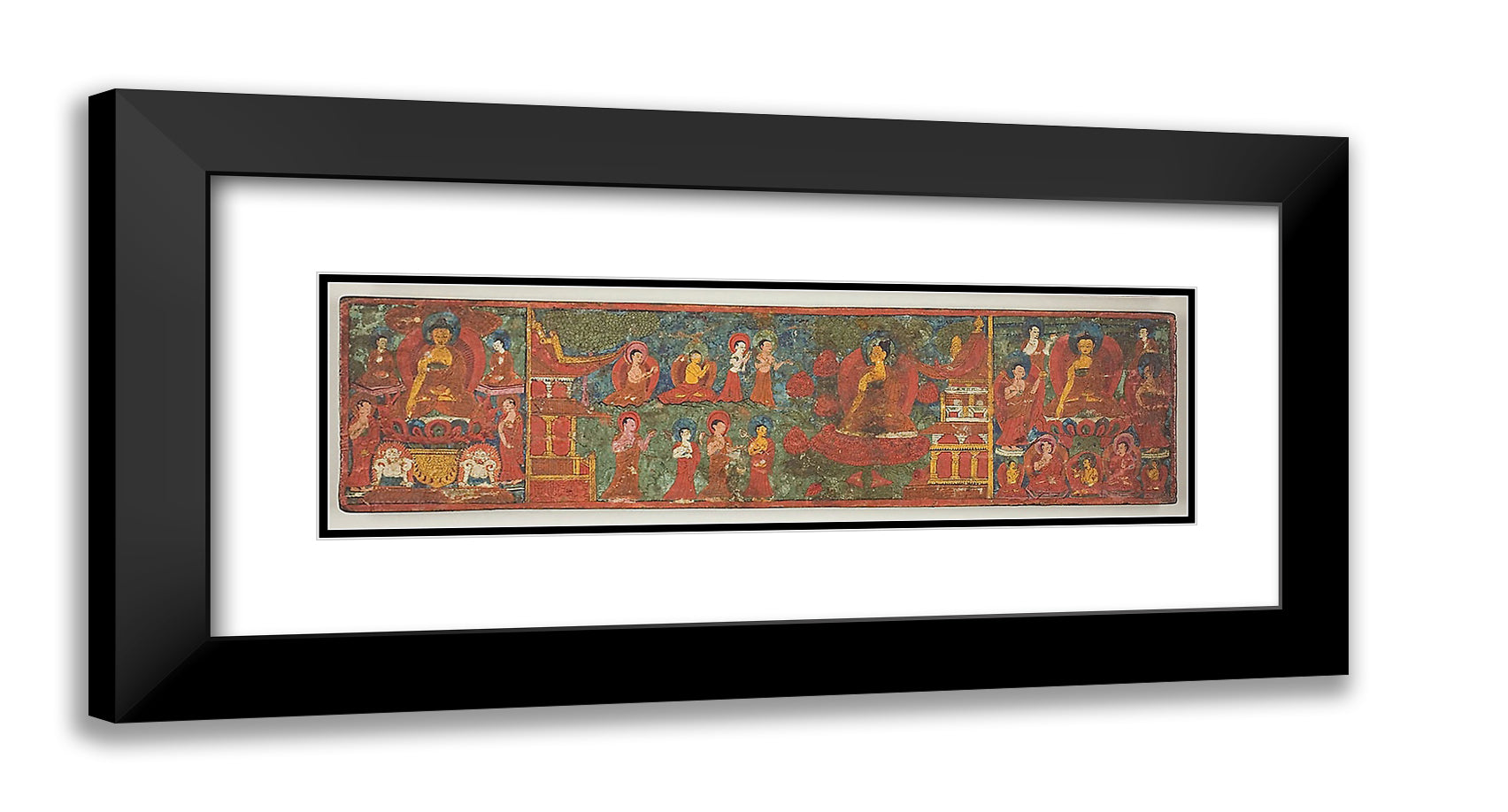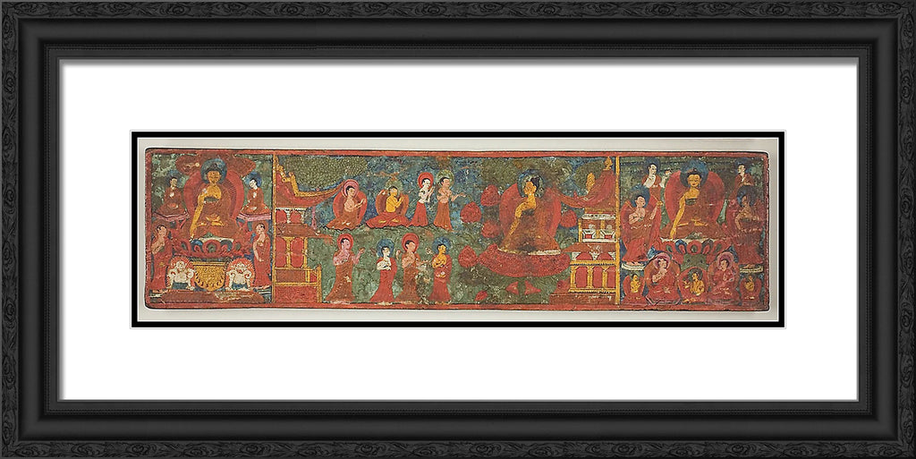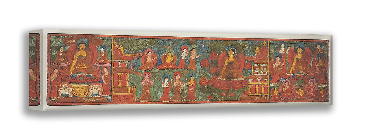 / One of a Pair of Manuscript Covers with Buddha Overcoming Temptation Surrounded by Disciples by Artist Unknown