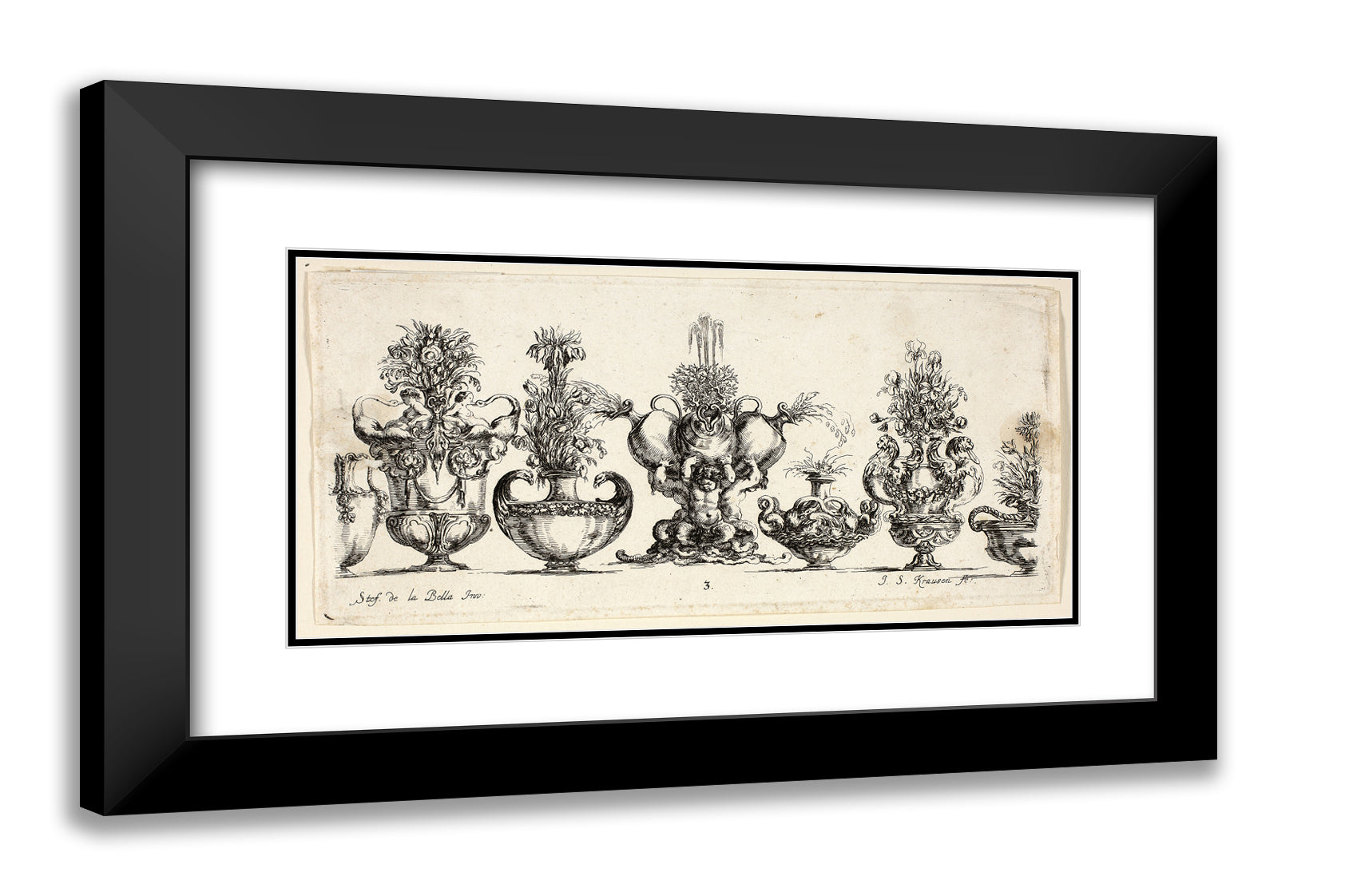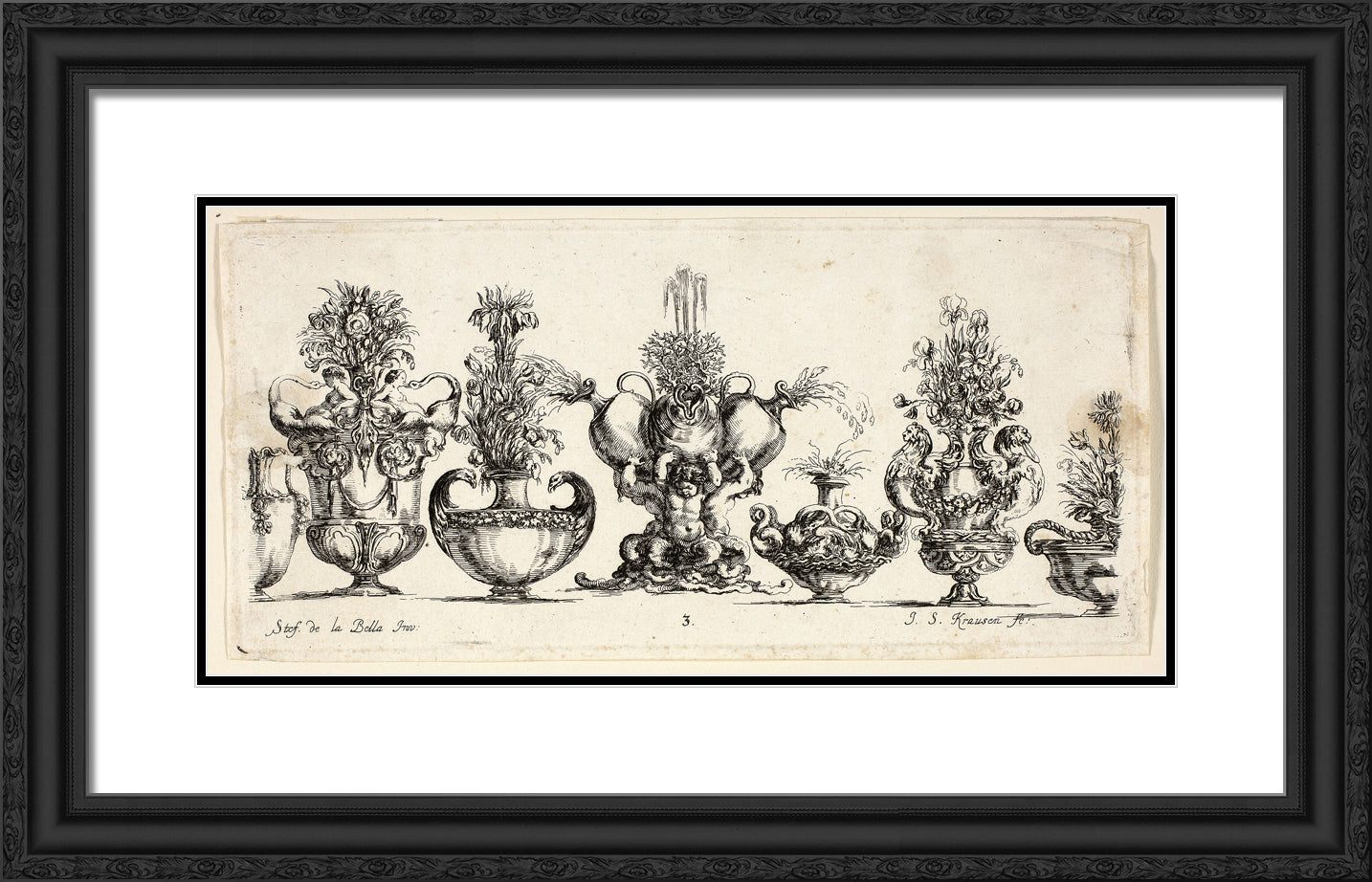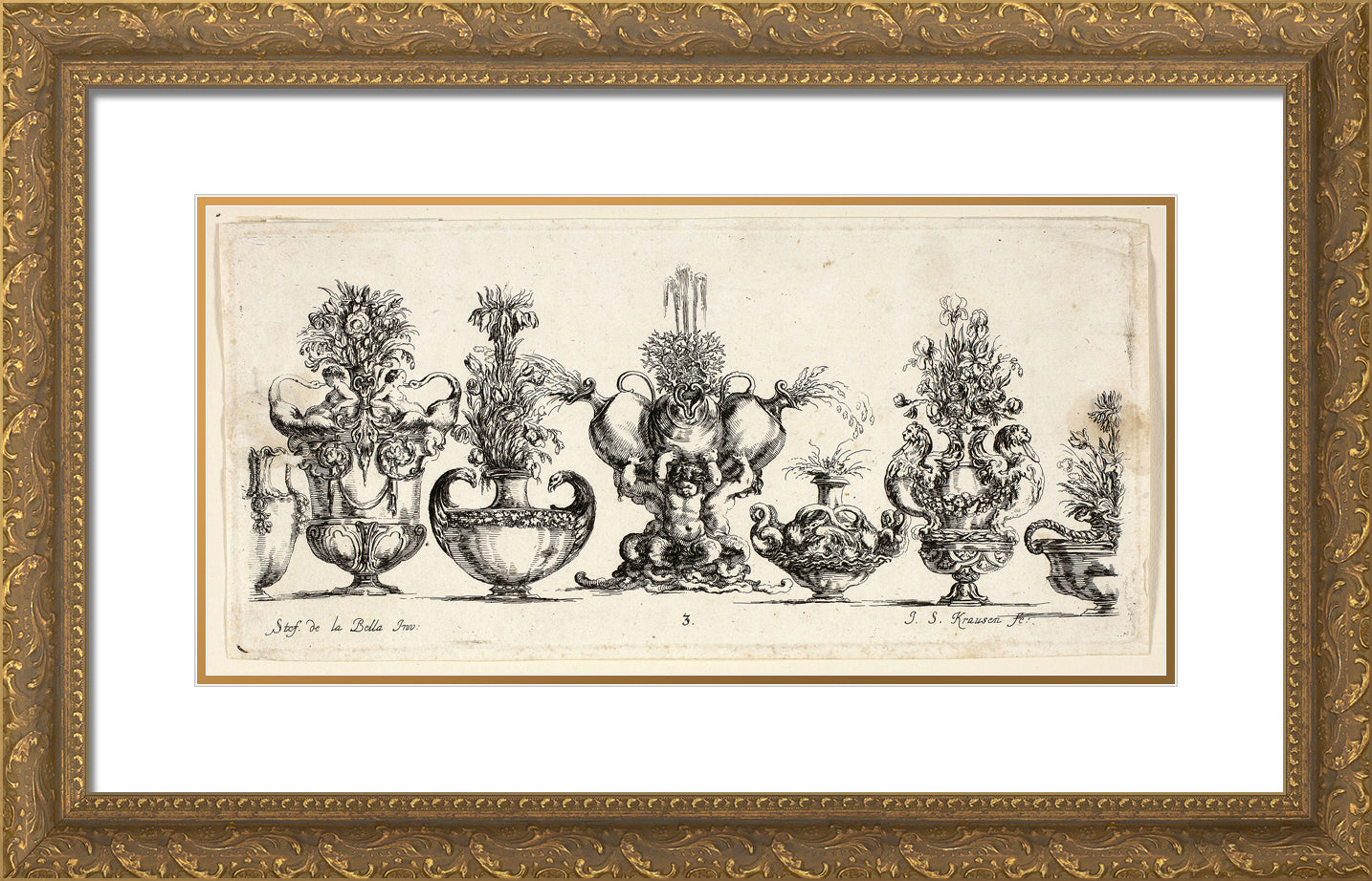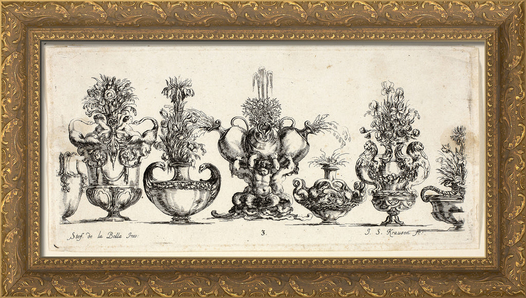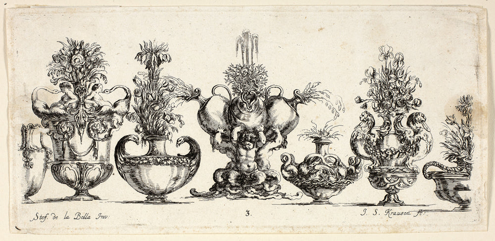 / Plate Three from Raccolta di Vasi diversi di Stef. de la Bella Fiorentino by Johanna Sibylla Kusell, (Kuslin Kraus)