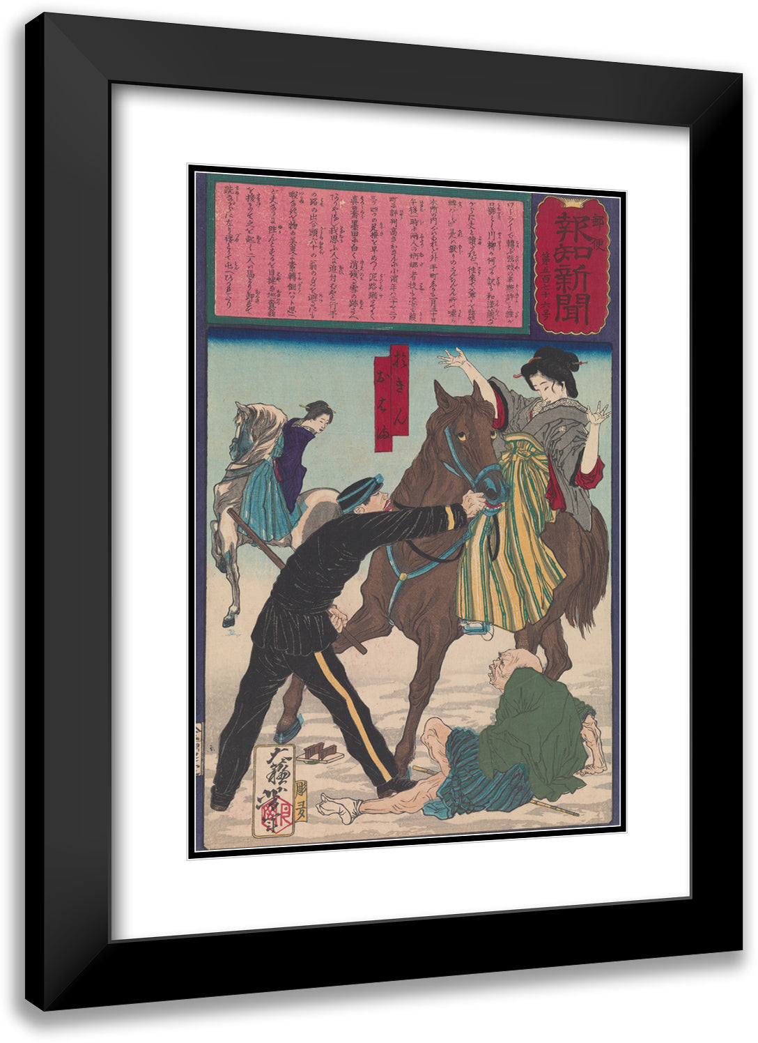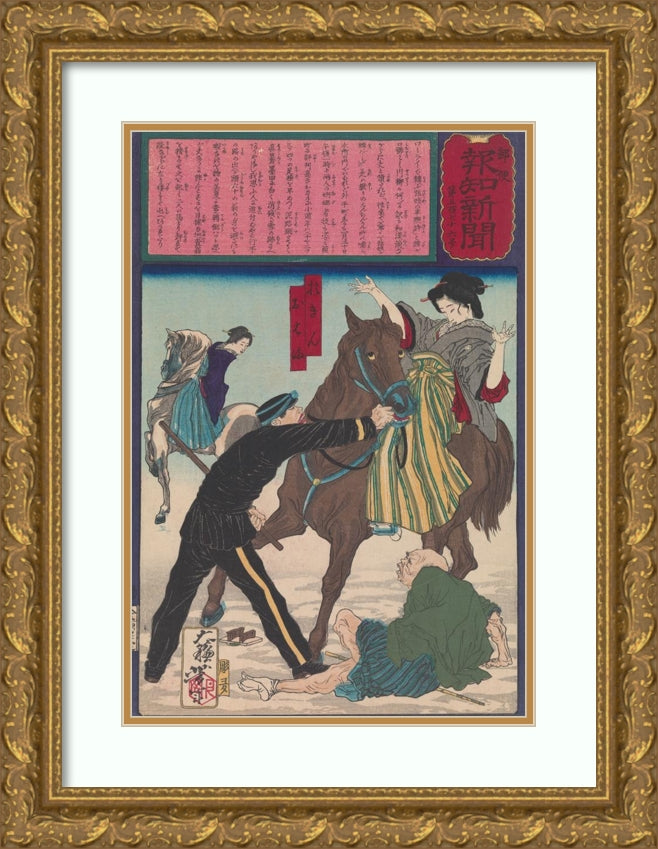 / Police Arresting the Geisha Oharu and Okin for Injuring an Old Man While Galloping on Horseback (1875)