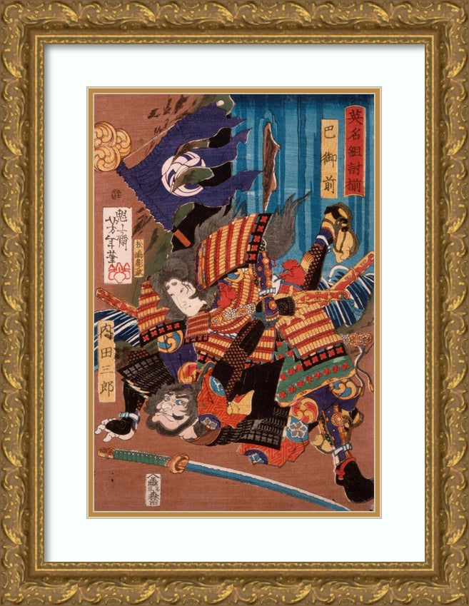 / Tomoe Gozen, Wife of Kiso Yoshinaka, Defeating Uchida Saburo (1865)