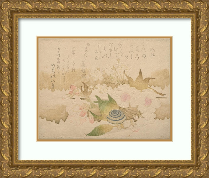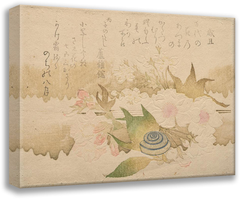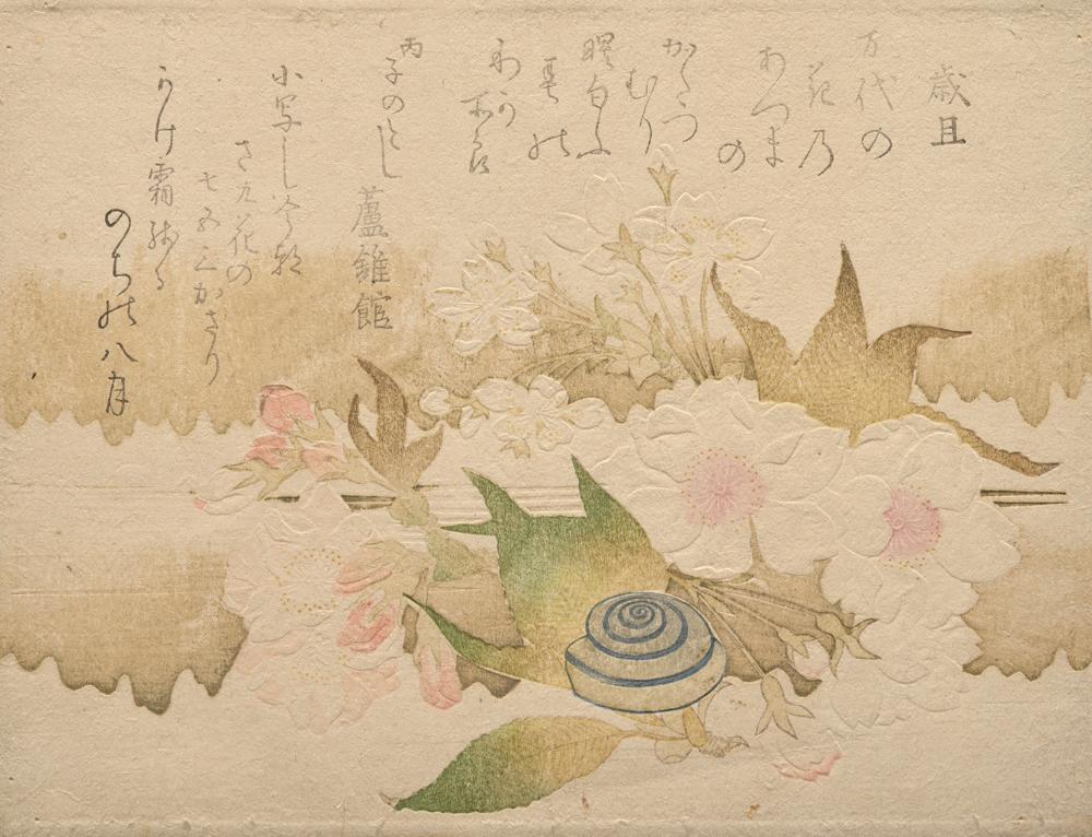 / New Year Poems; Snail and Cherry Blossoms (Saitan; Oka Ni Katsumuri) (1816)