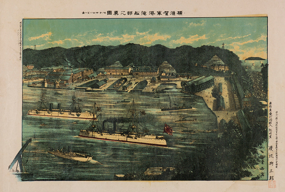 / True Depiction of the Shipyards in the Naval Port at Yokosuka, as Viewed from Nenokamiyama (1894)